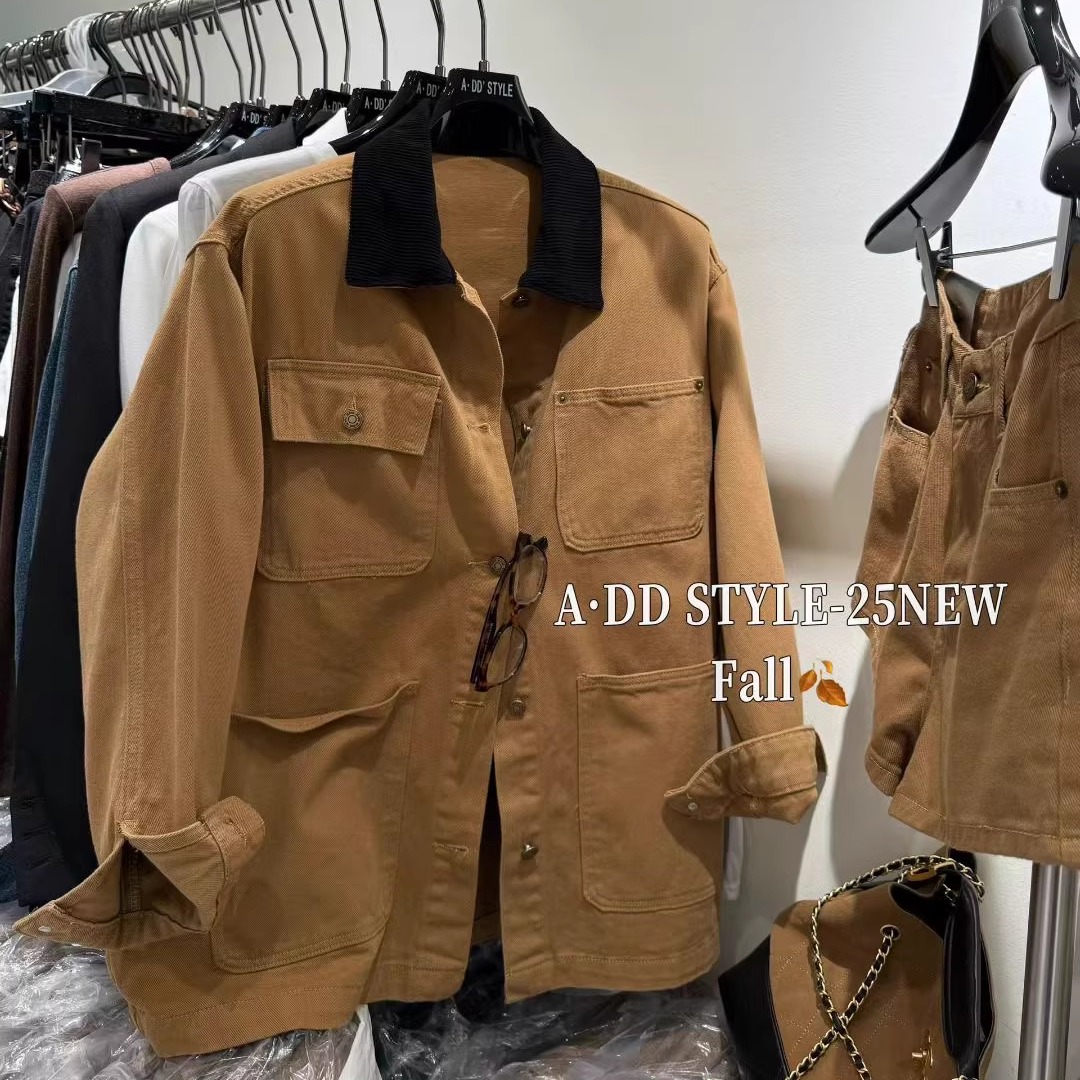 ADD牛仔套装2025秋季新款洋气宽松显瘦拼接设计感牛仔外套+短裤女