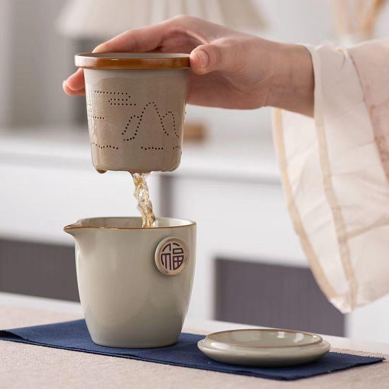 旅行茶具功夫套装便携汝窑陶瓷快客杯一壶二杯露营户外泡茶器茶杯