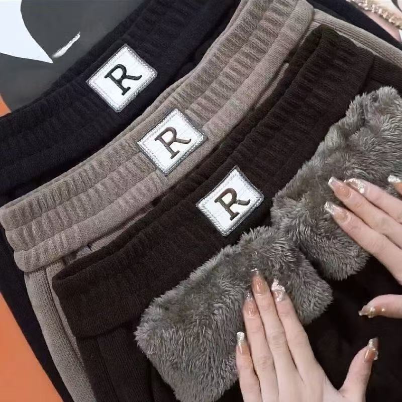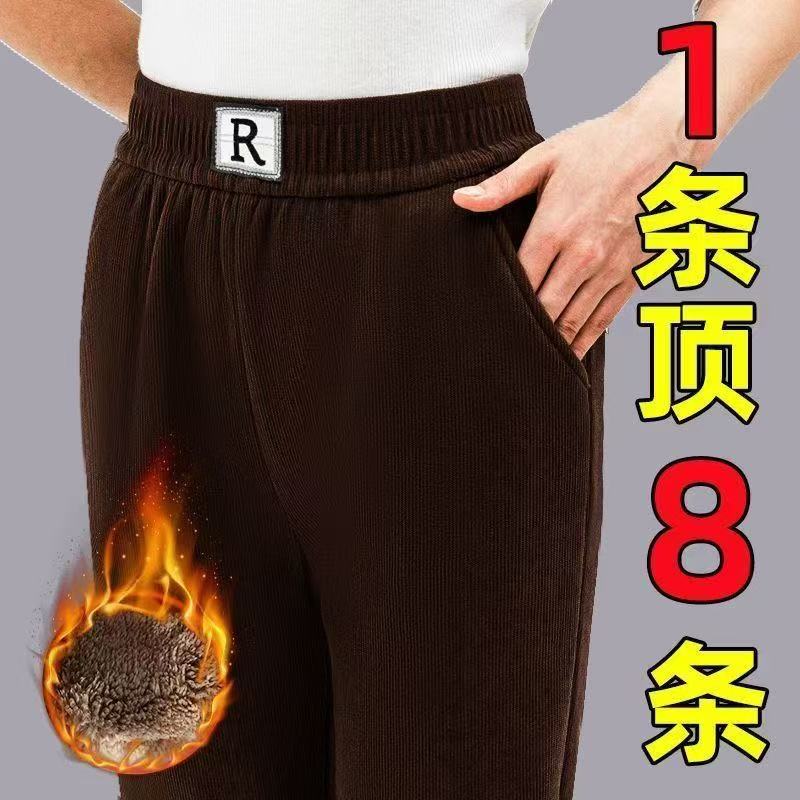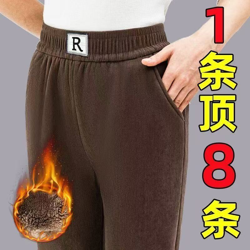 春秋冬加绒加厚宽松大码中年妈妈保暖裤雪尼尔休闲高腰外穿直筒裤