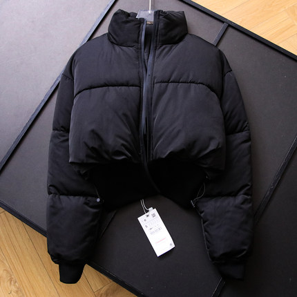 纯色立领下摆拼接短款面包服2025冬季新款长袖宽松外套女棉衣B733