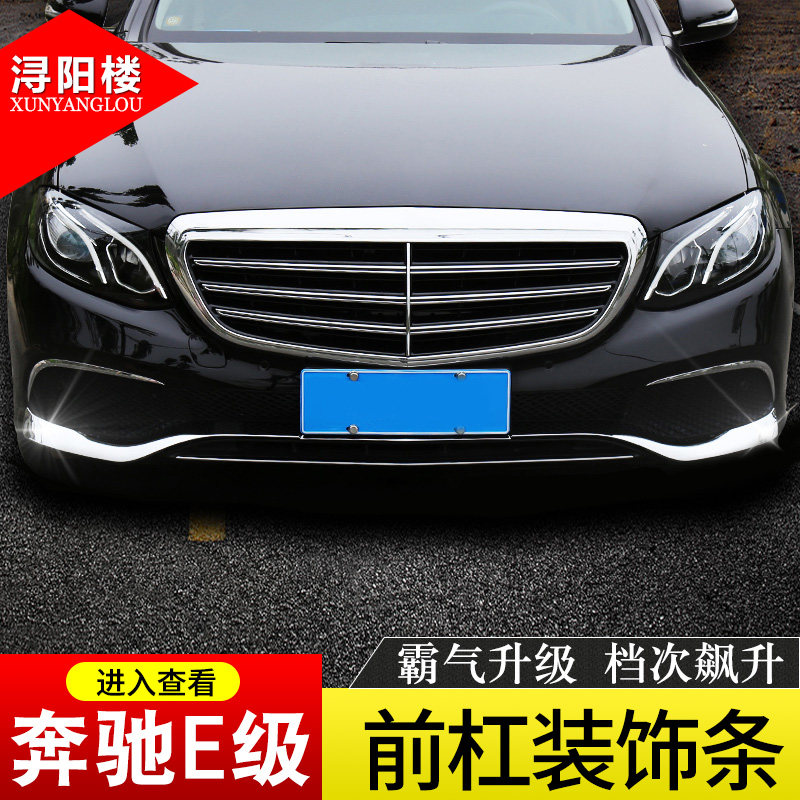 适用于16-20款奔驰E级改装E200L E300L前保险杠亮条E级前杠装饰条