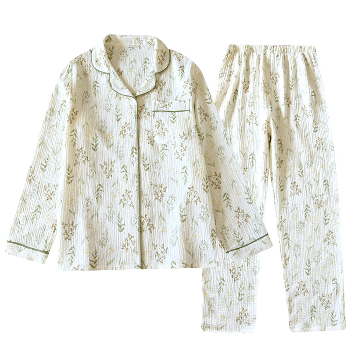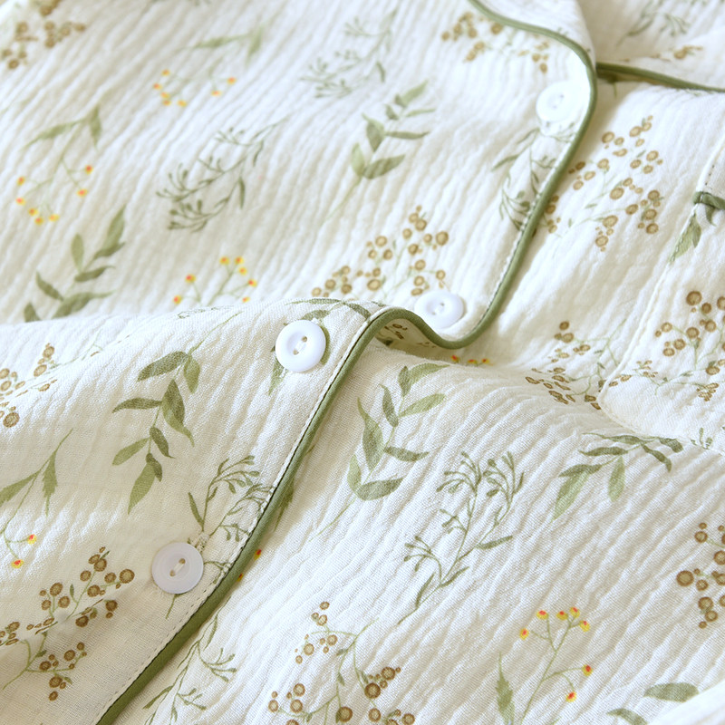 女绉布纯棉双层纱布睡衣长袖