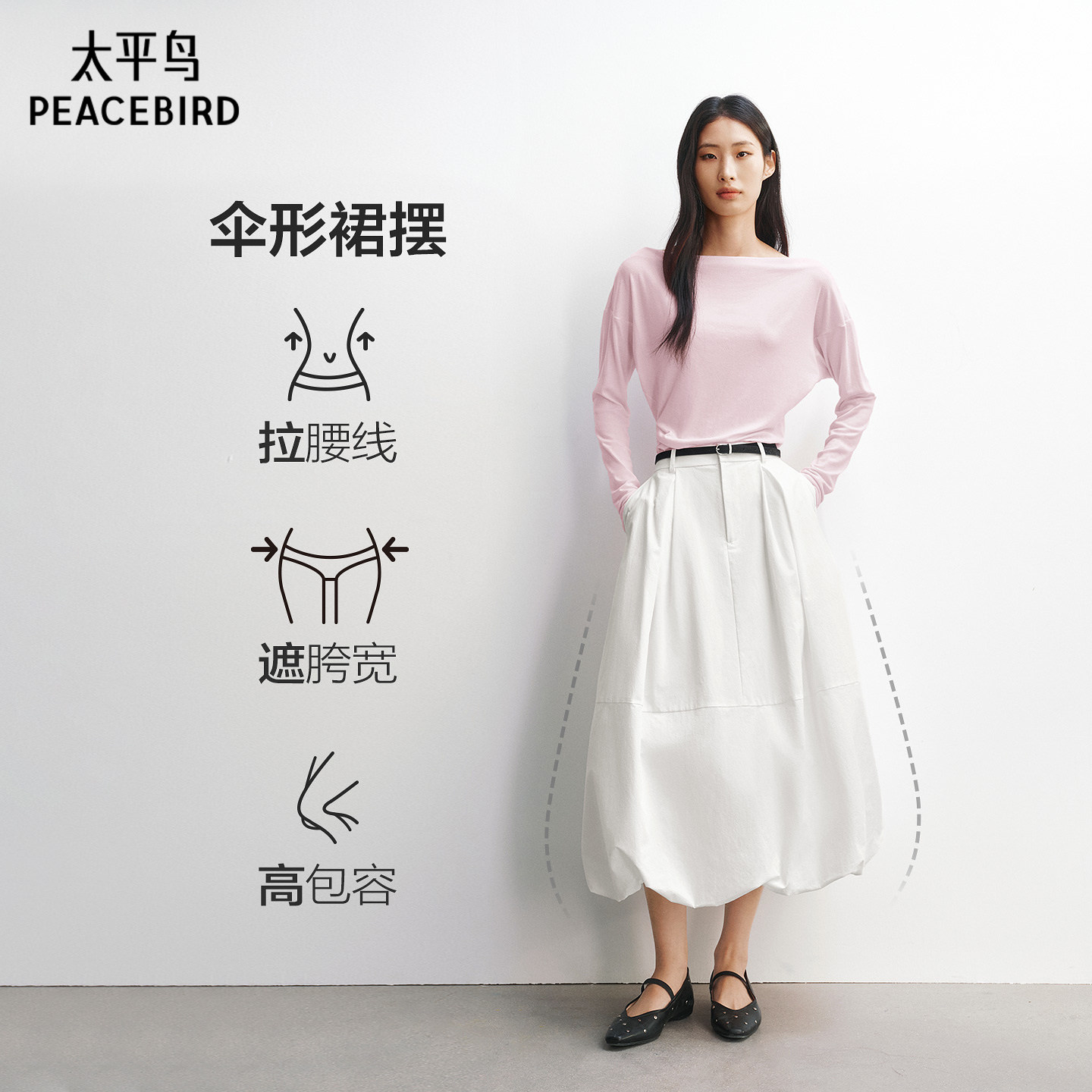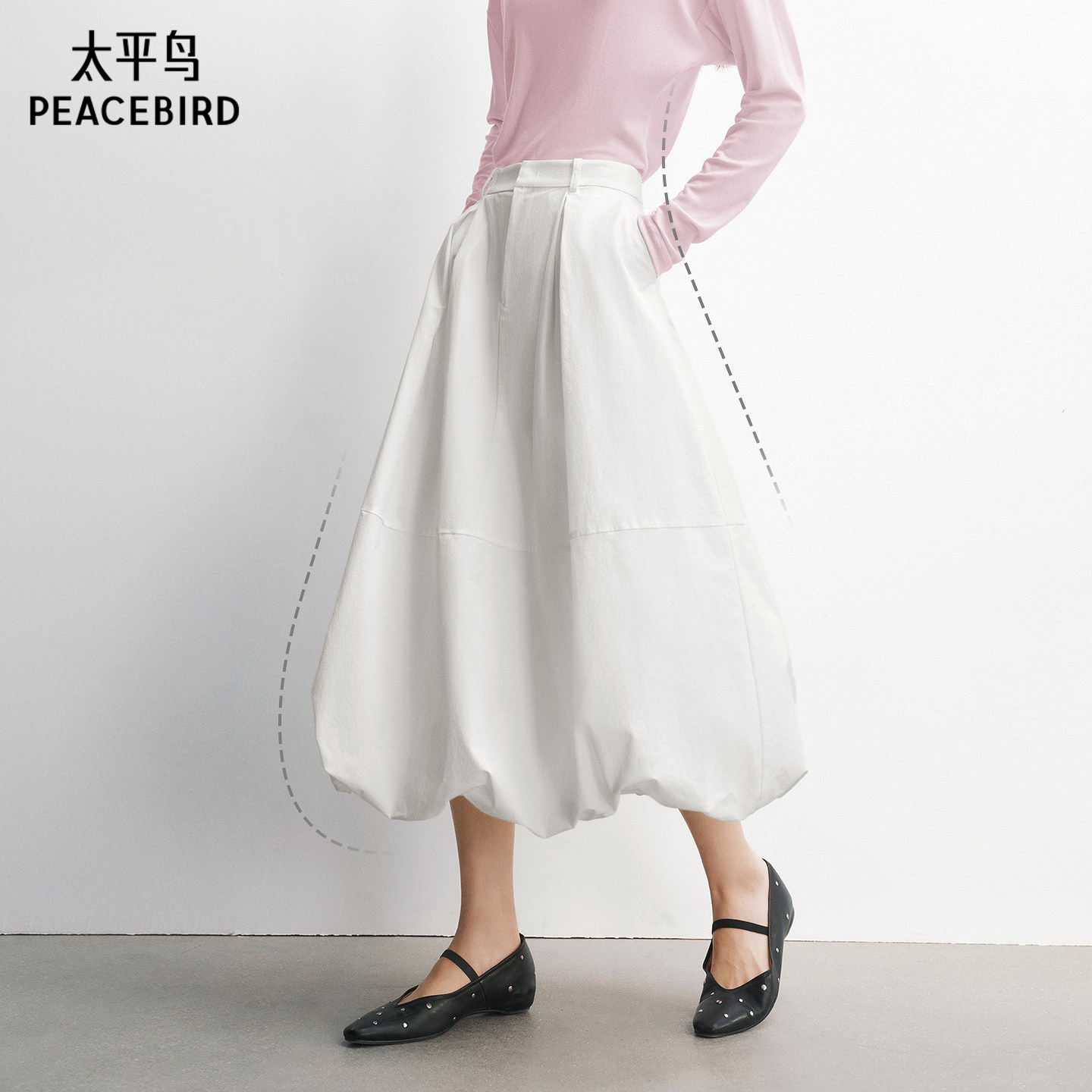 太平鸟白色郁金香花苞半身裙分割线设计白色通勤品质中长裙新款