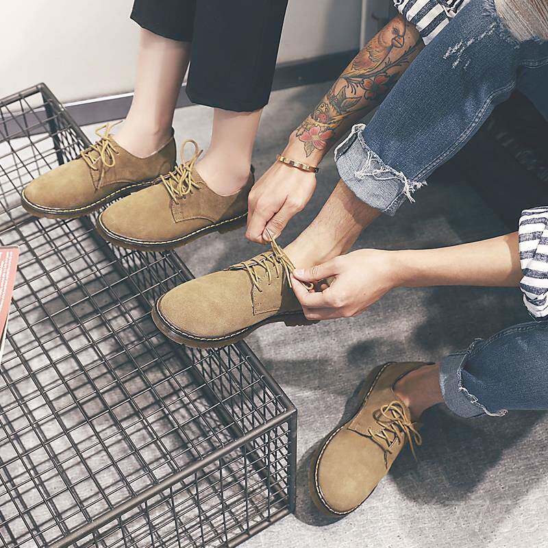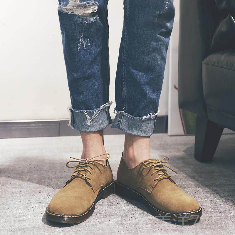 高档皮英伦男士休闲鞋马丁低帮侣反绒情鞋工装真鞋潮皮小码男鞋子