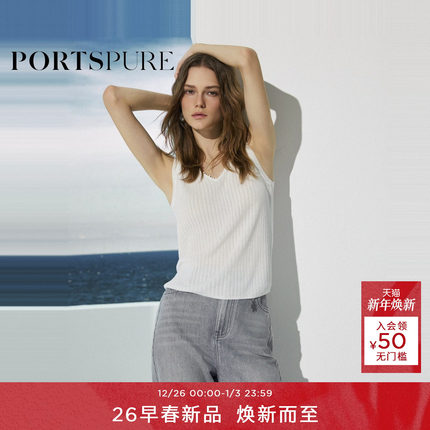 宝姿PORTSPURE女装2026早春新品领边珠饰V领针织背心