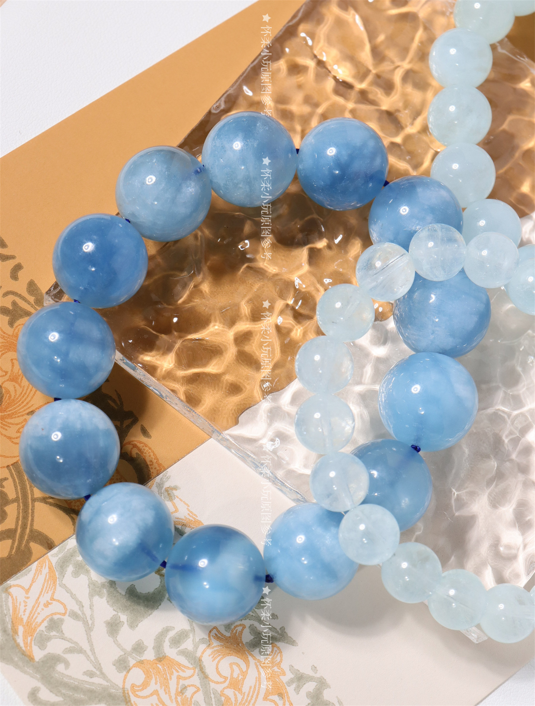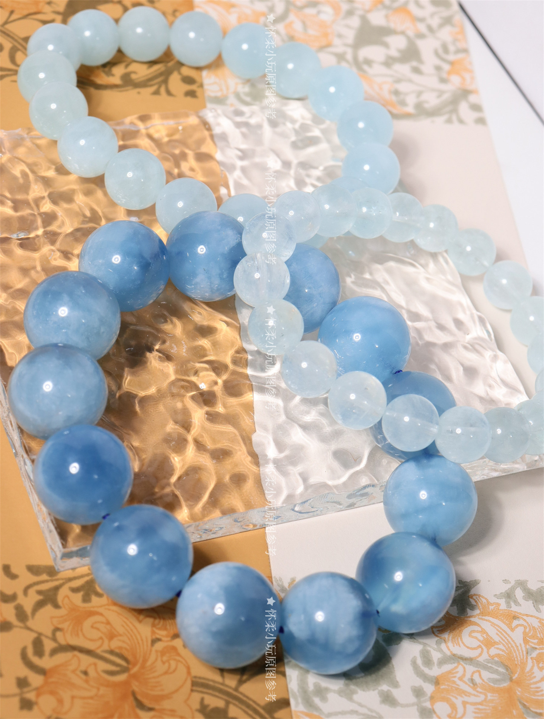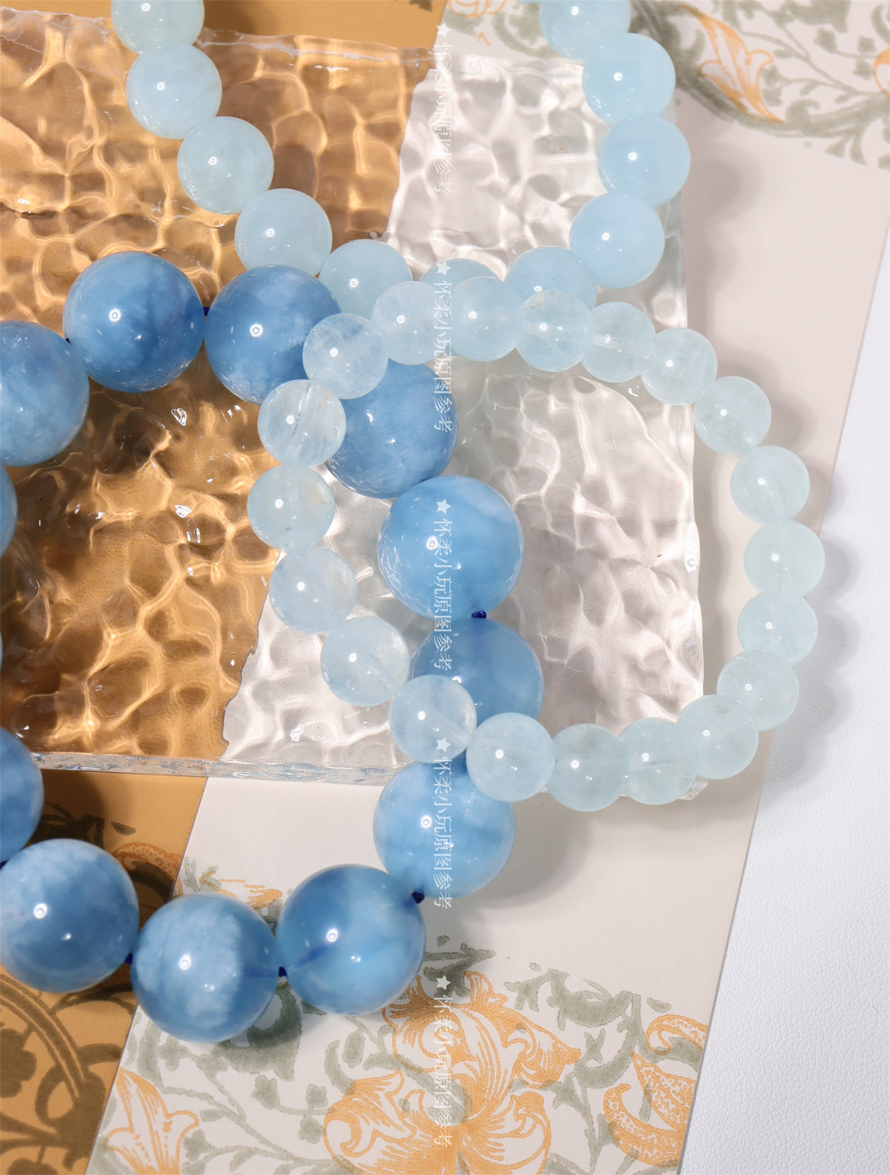 怀柔家 海蓝宝海盐色天然手串一图一物冰透净化送礼手链水晶宝石