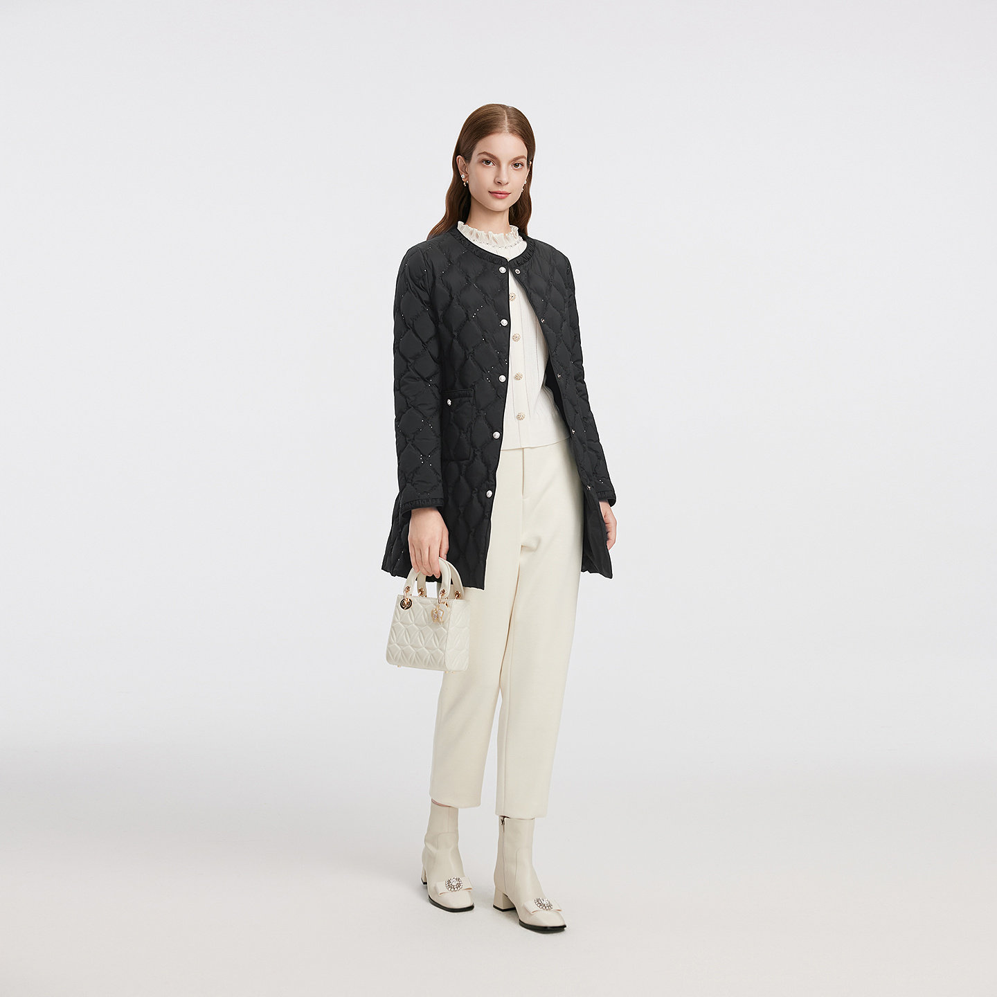 【商场同款】Lakoradior拉珂蒂女25秋冬新款法式气质菱格薄棉外套
