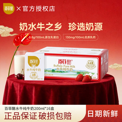 百菲酪水牛纯牛奶成人儿童早餐奶200ml*16盒/箱-by
