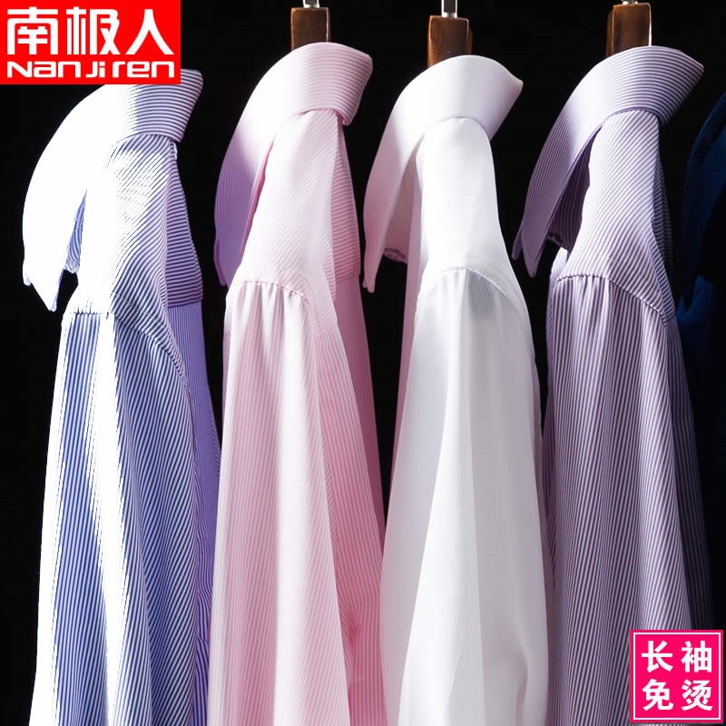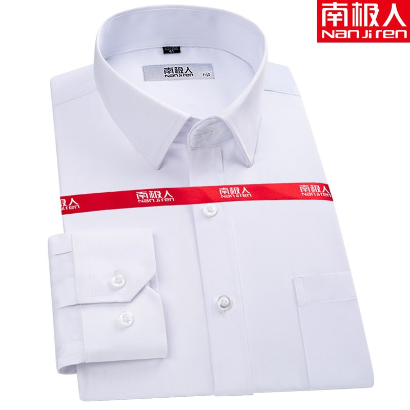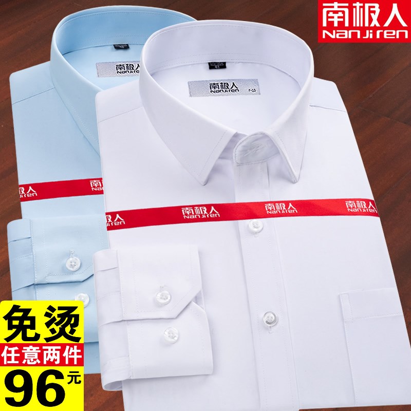 白衬衫男长袖商务抗皱职业工装正装宽松大码薄纯棉衬衣免烫