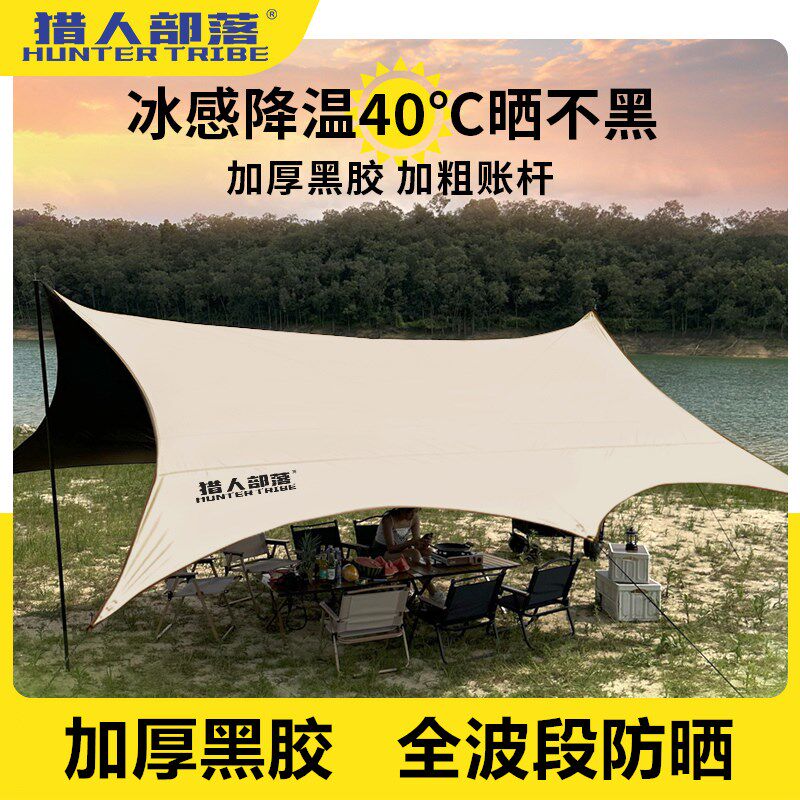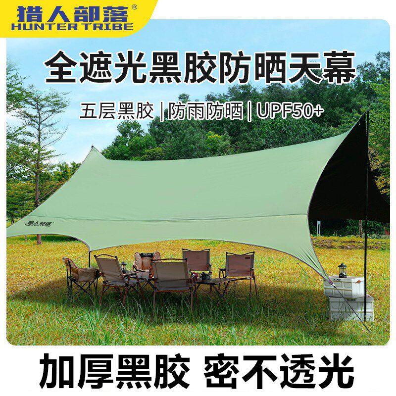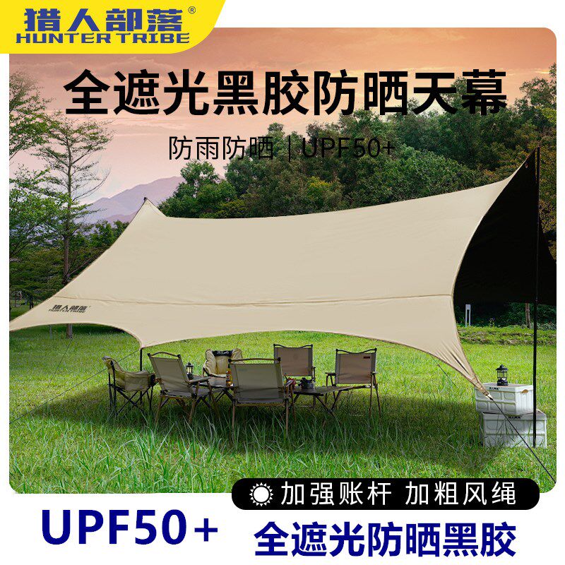黑胶天幕帐篷户外可折叠便携式露营装备野营野餐棚U防晒遮阳棚四