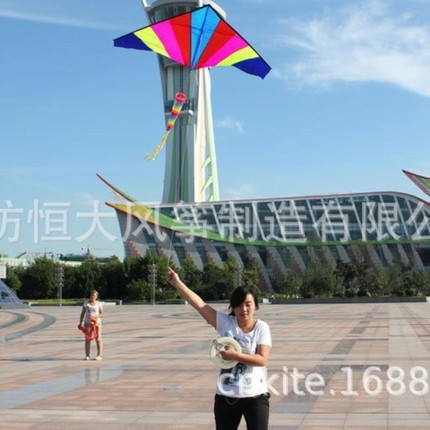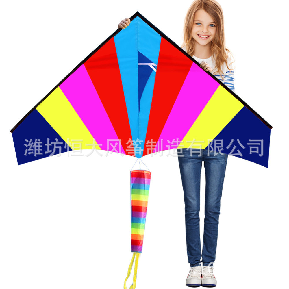 潍坊风筝1.8米彩虹三角风筝 儿童成人彩虹条 长尾新款微风易飞