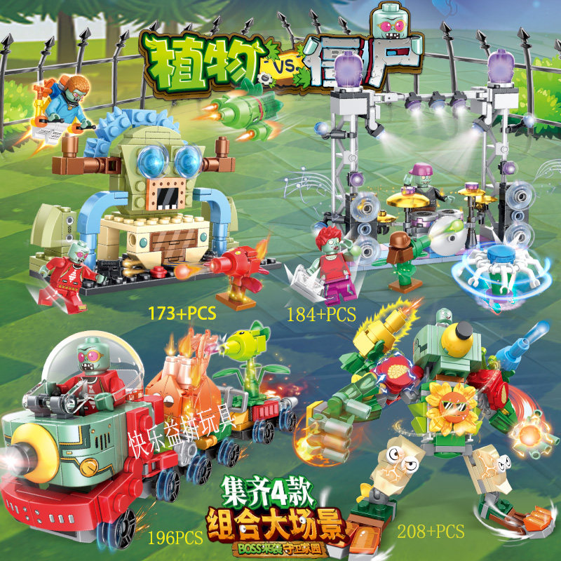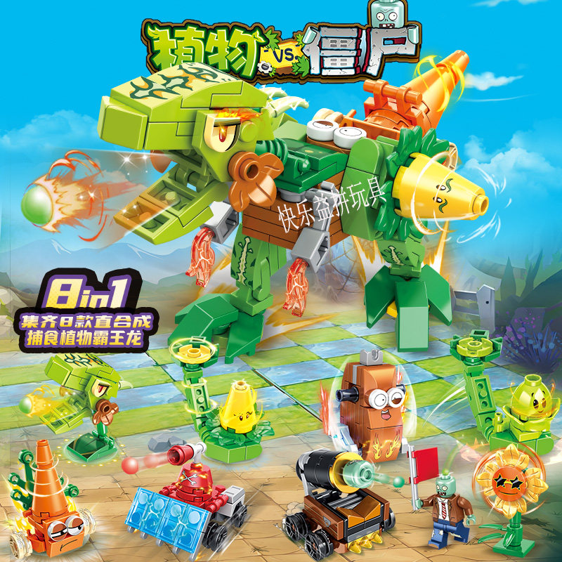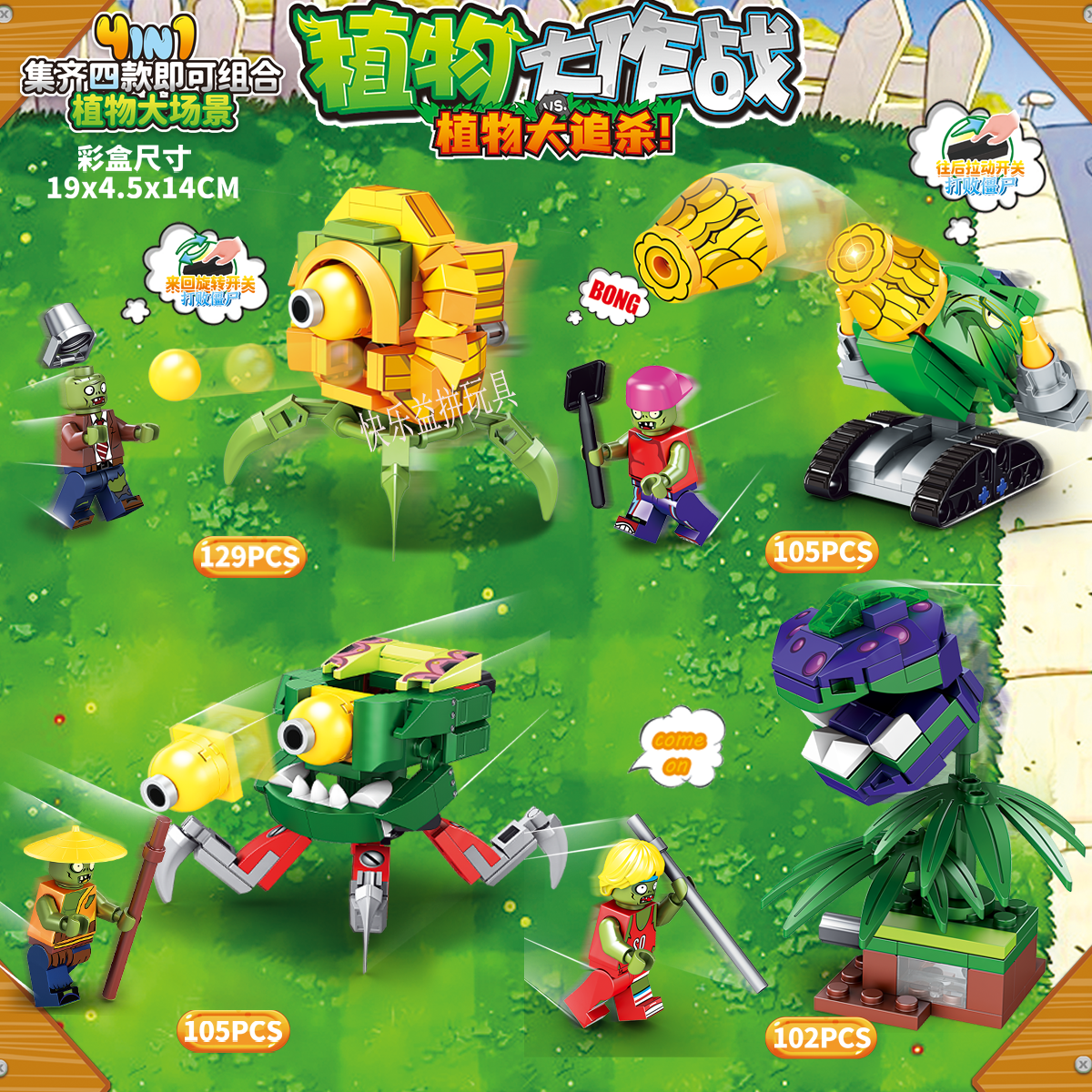 植物玉米车大战僵尸积木玩具食人花机甲大战场景拼装小颗粒玩具男