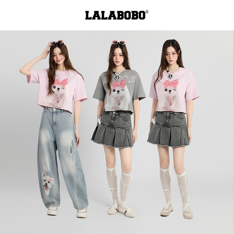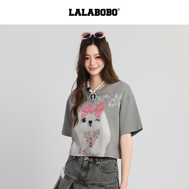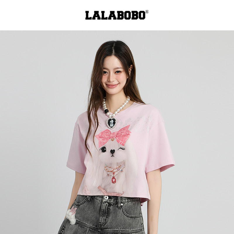 【商场同款】LALABOBO25年短袖上衣夏新款女印花宽松休闲短款T恤