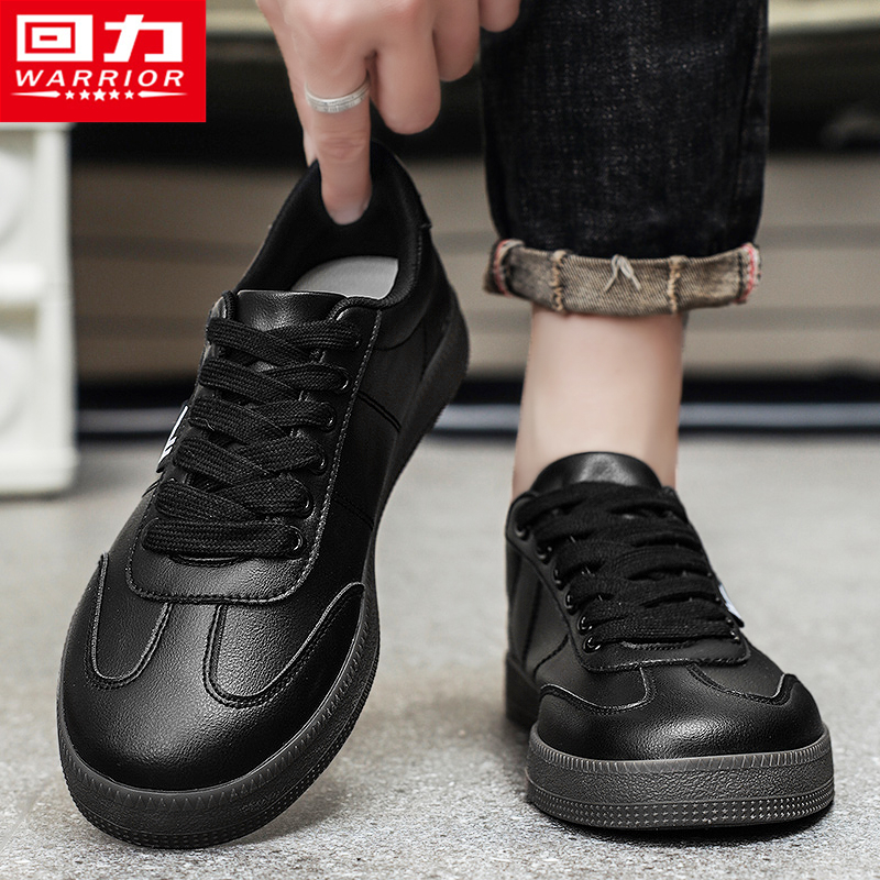 回力秋季男鞋运动休闲通勤软底舒适上班德训板鞋防滑黑色平底皮鞋