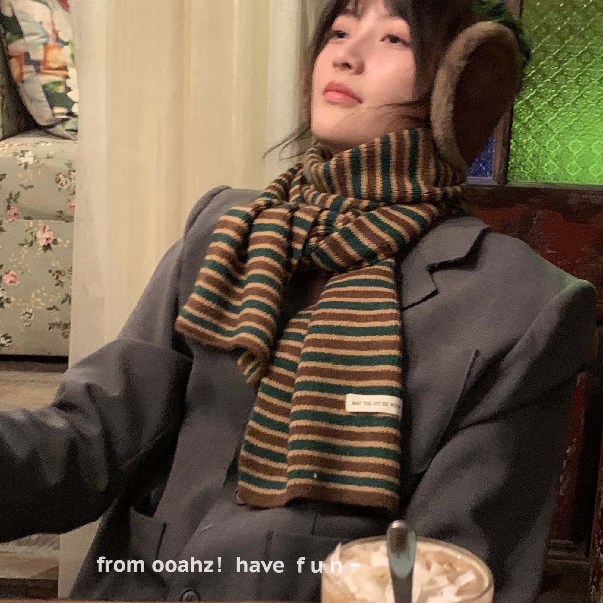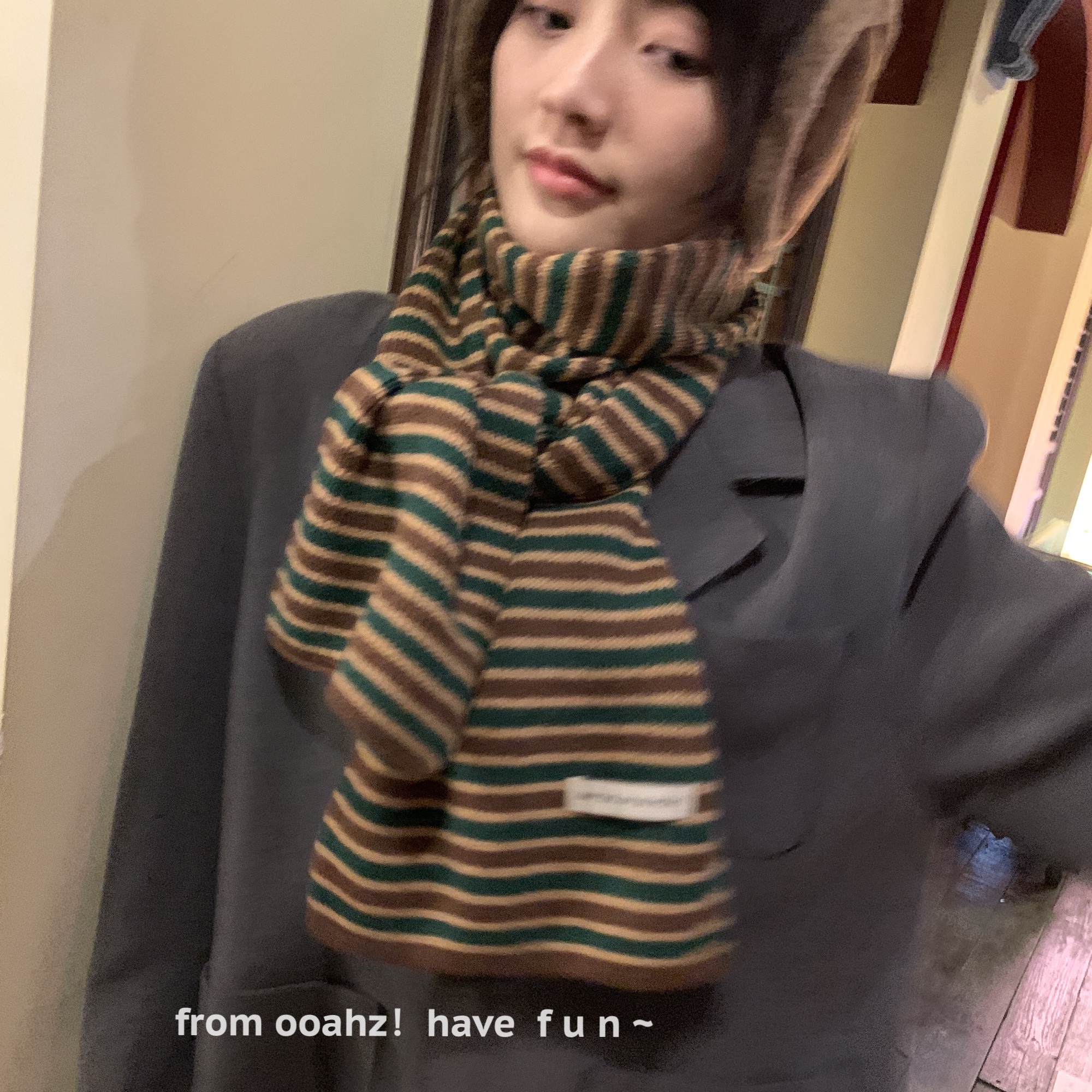唤醒沉闷~仿羊绒条纹针织围巾冬季高级感韩百搭情侣保暖围脖男女