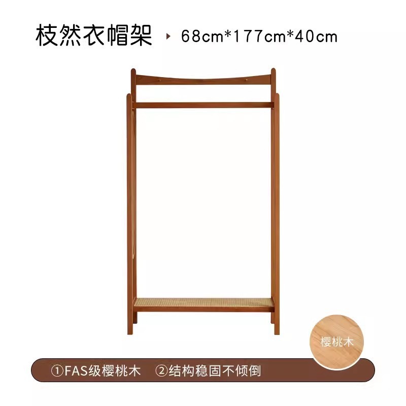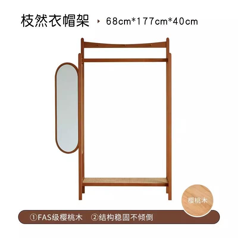 实木衣帽架落地卧室北欧樱桃木客厅镜子一体家用挂衣架衣架玄关