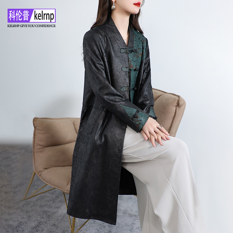 海宁真皮皮衣女2025冬新中长款复古国风印花头层绵羊皮夹克小外套