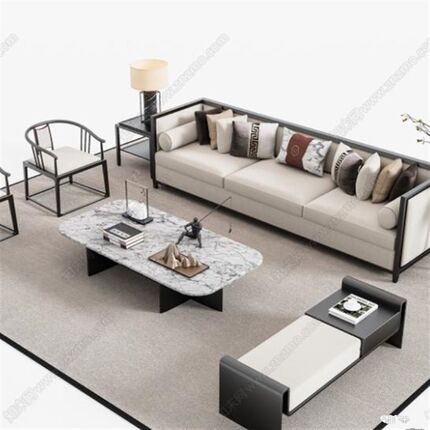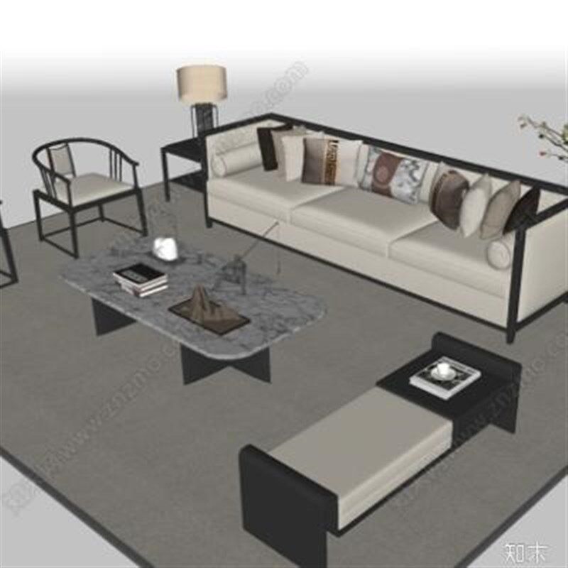 样板间成套茶几新中式实木w沙发北美黑胡桃色客厅别墅轻奢家具