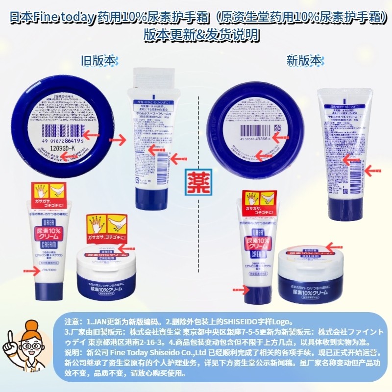 日本原资生堂(finetoday)10%尿素滋润护手霜防干裂100g*2/60g*2