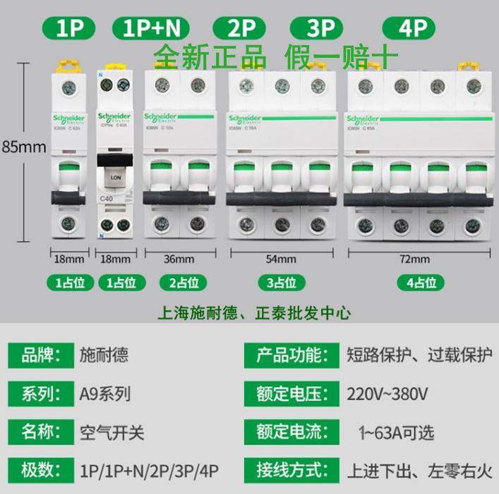 原装施耐德小型断路器 IC65N 1P C4A 施耐德空气开关A9F18104