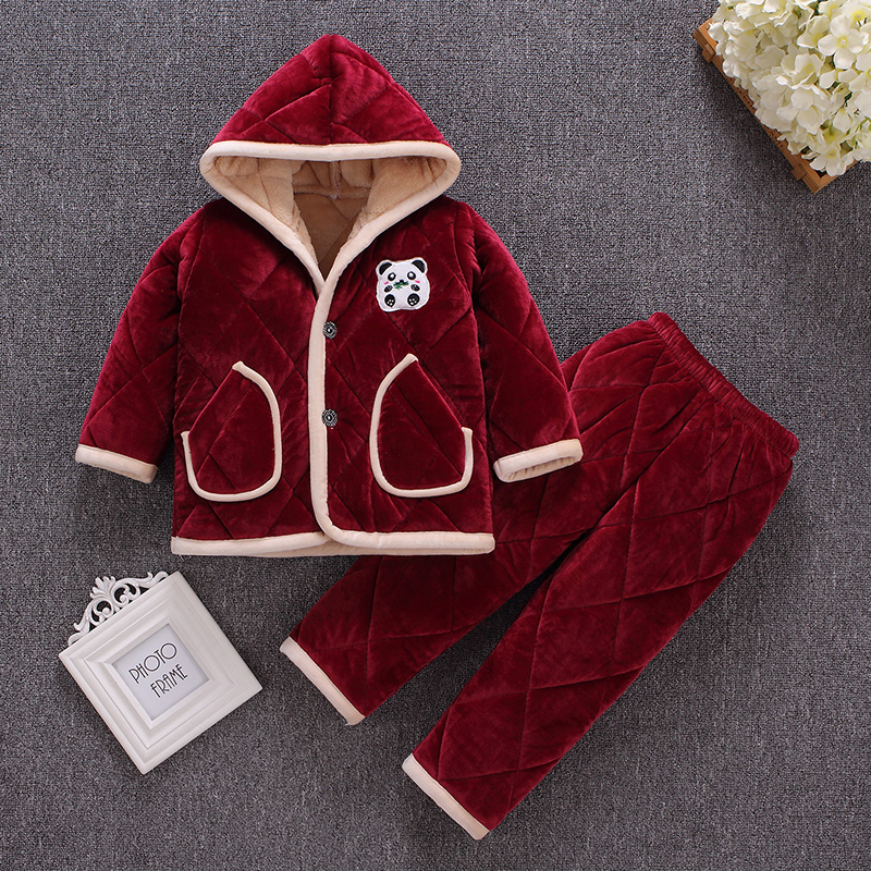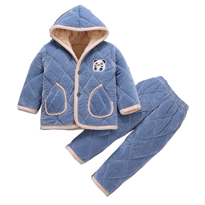冬季加厚法兰绒儿童睡衣男童女童装秋冬款男孩三层夹棉宝宝珊瑚绒