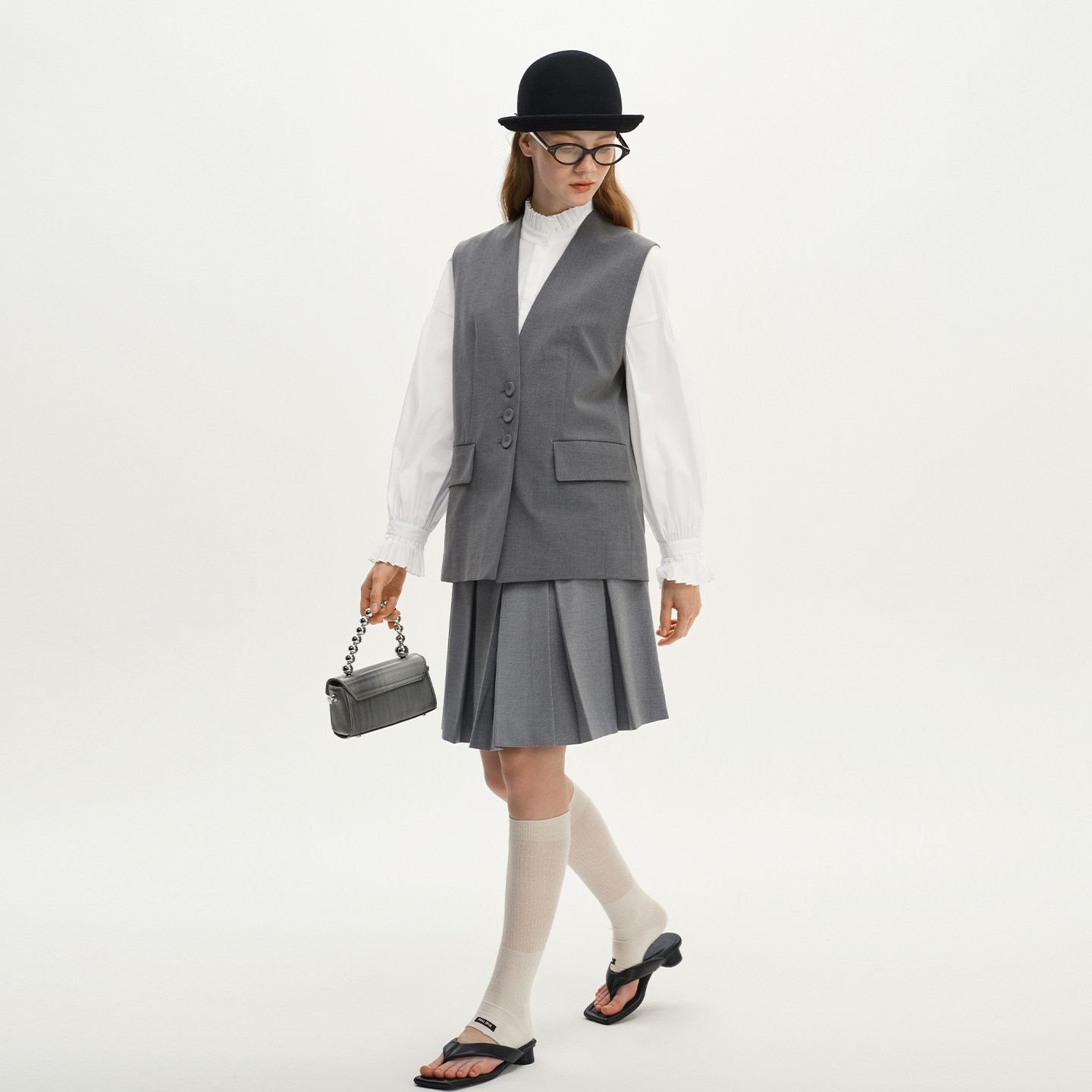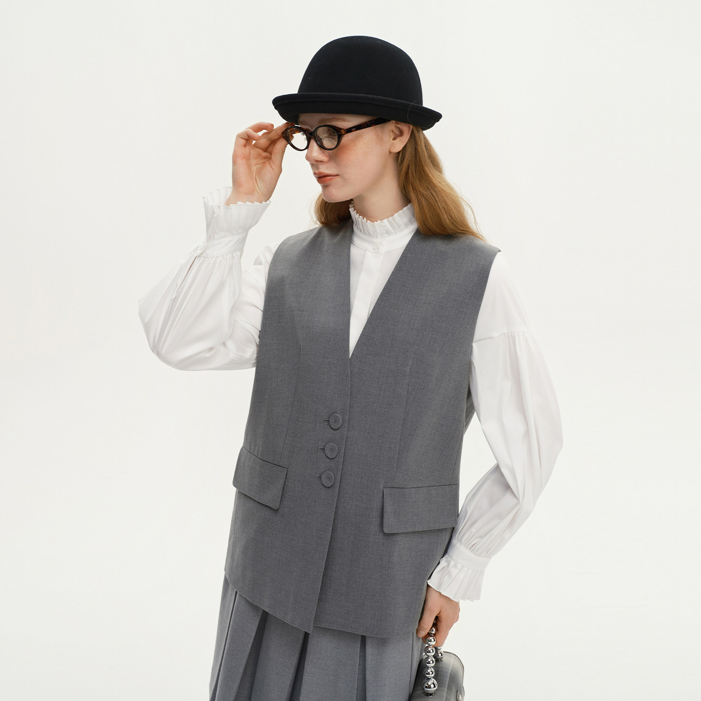 艺之卉EACHWAY静奢风时尚马甲2025秋新款高级灰优雅西装外套女