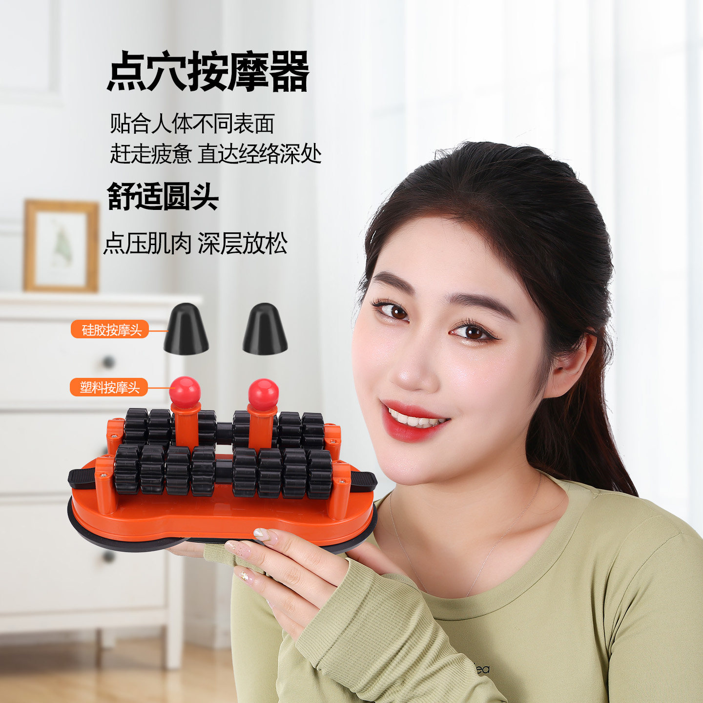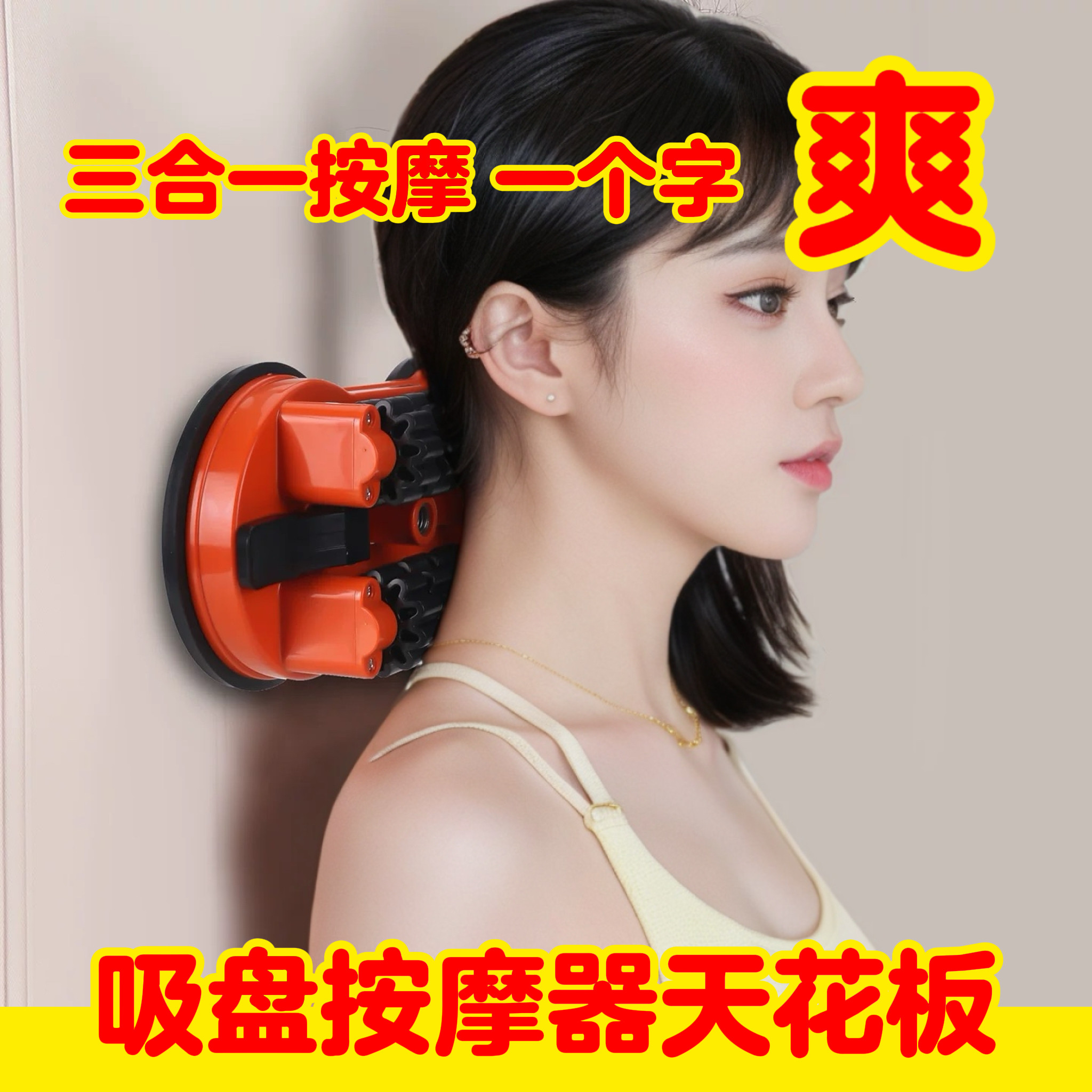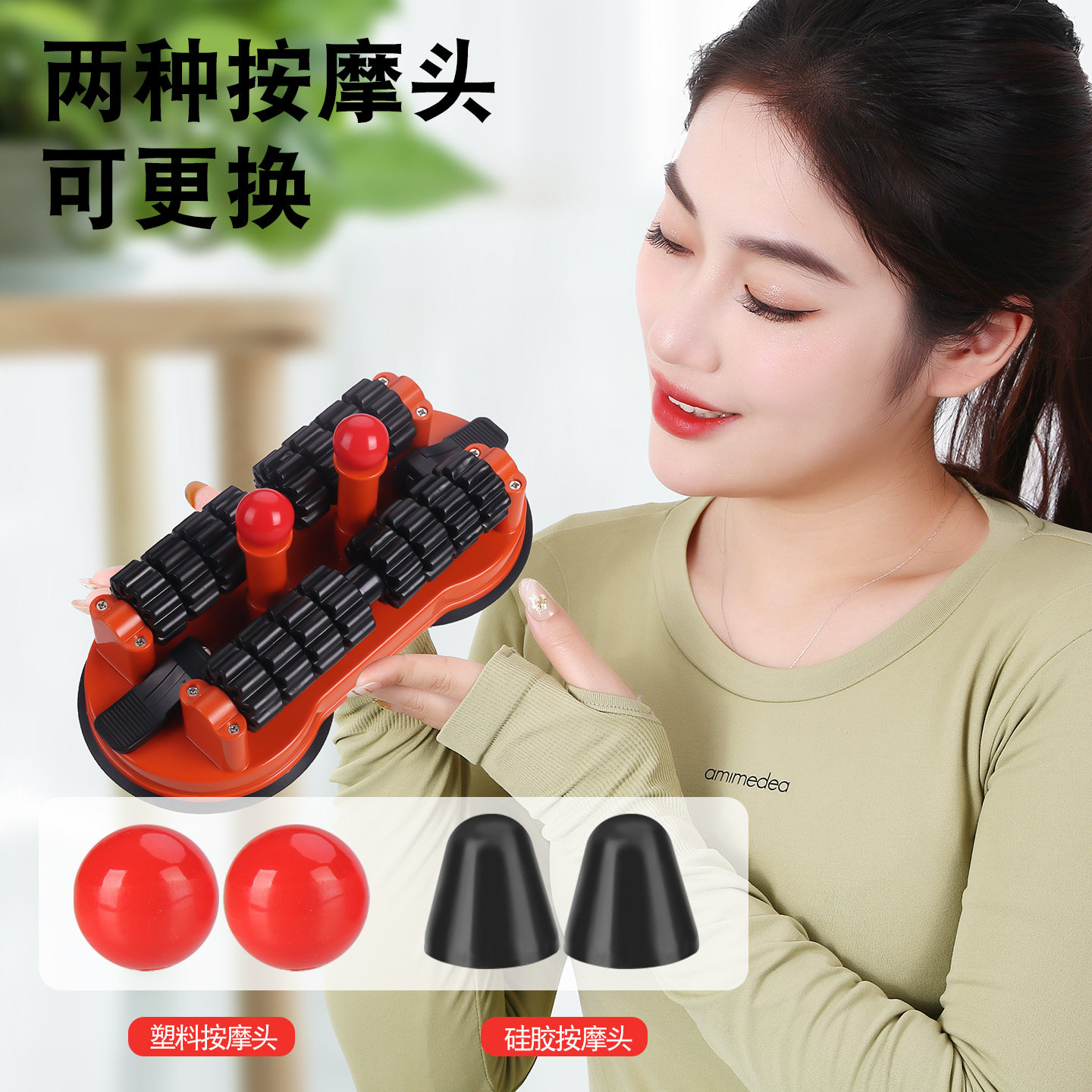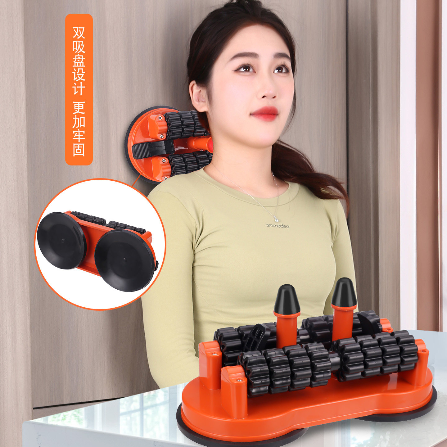 吸墙双滚轮按摩器颈椎富贵包腰背肩胛骨缝开背点穴足底全身按摩仪