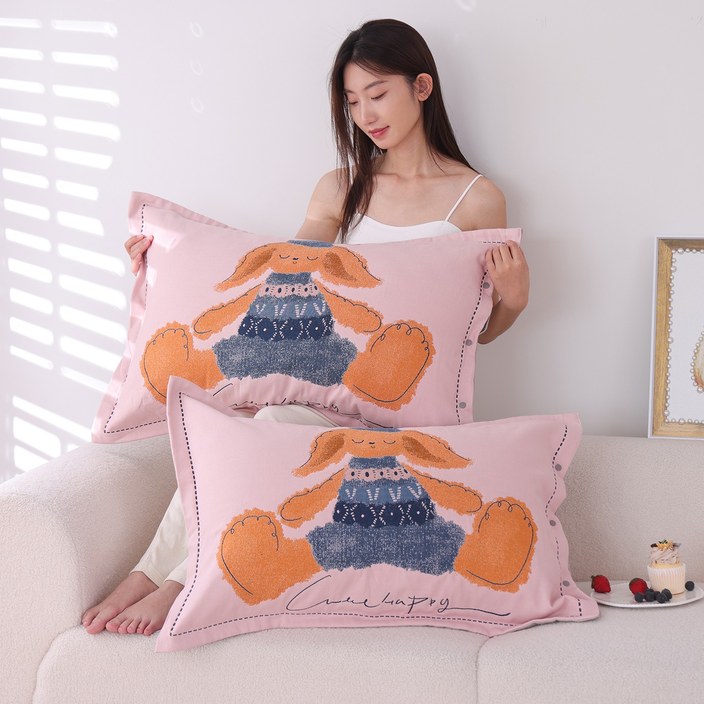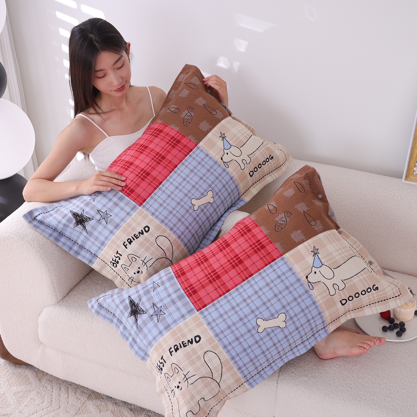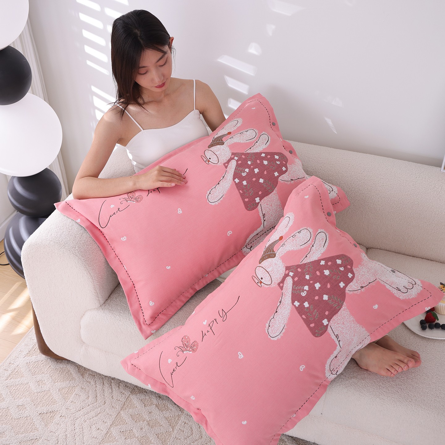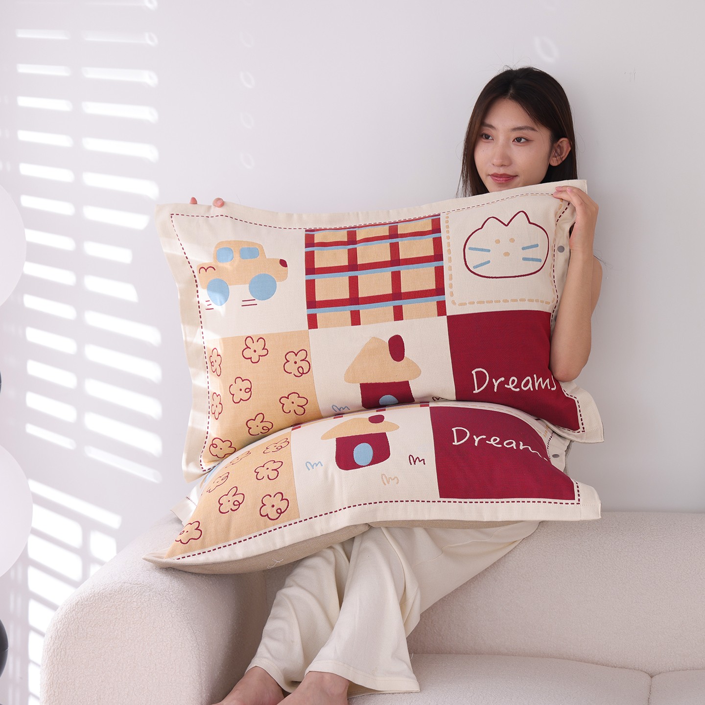 按扣纯棉纱布枕套一对装单人家用全包防脱落枕芯内胆套全棉枕头套