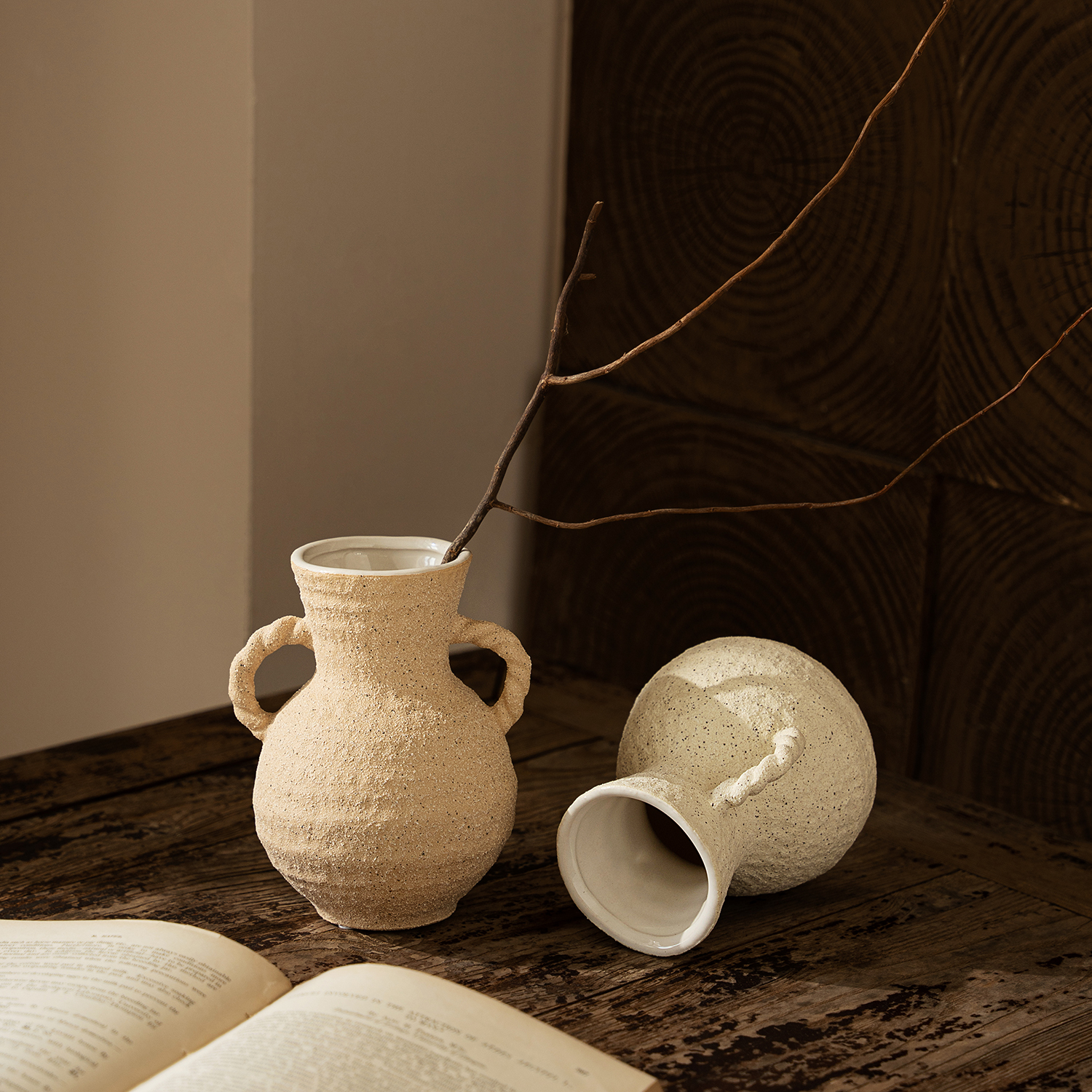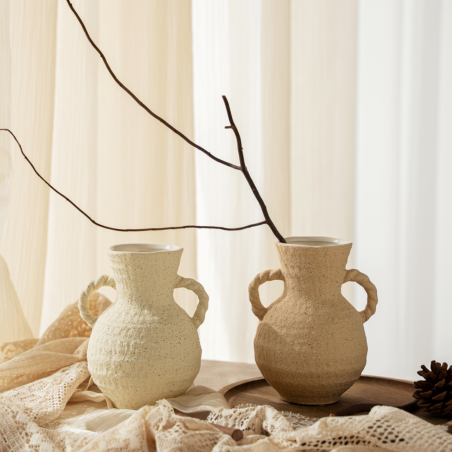 法式奶油风复古粗陶陶瓷花瓶