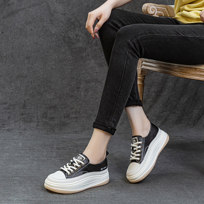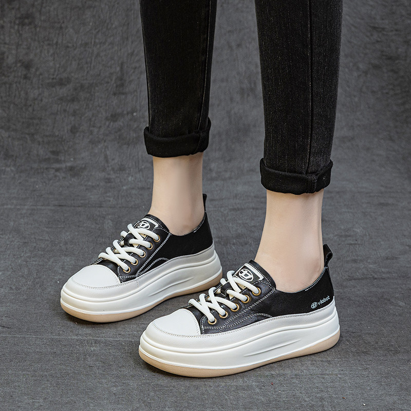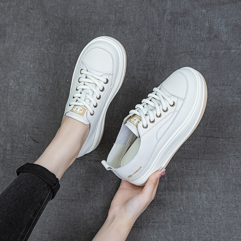 头层牛皮厚底轻便小白鞋2025秋季新款百搭简约休闲运动女单鞋板鞋