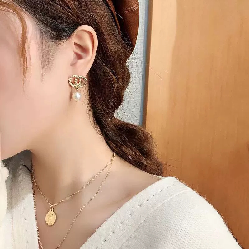 韩国东大门简约珍珠耳环气质百搭镶钻耳钉2025年新款网红耳坠耳饰