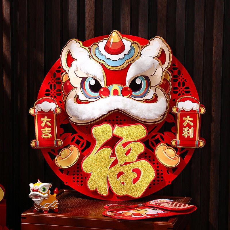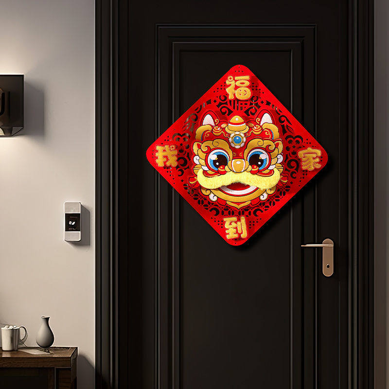 毛绒立体醒狮福字门贴2026春节马年过年新年入户大门装饰布置墙贴