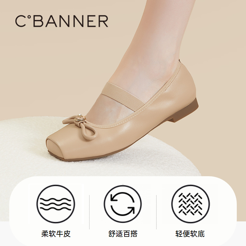 千百度芭蕾舞平底鞋女秋季气质小香风晚晚温柔风鞋子玛丽珍单鞋