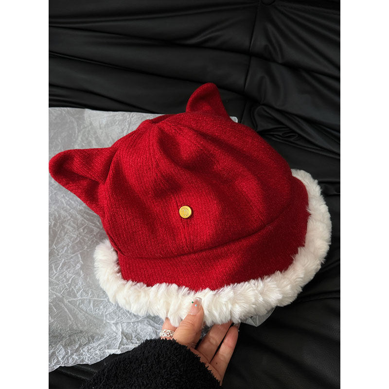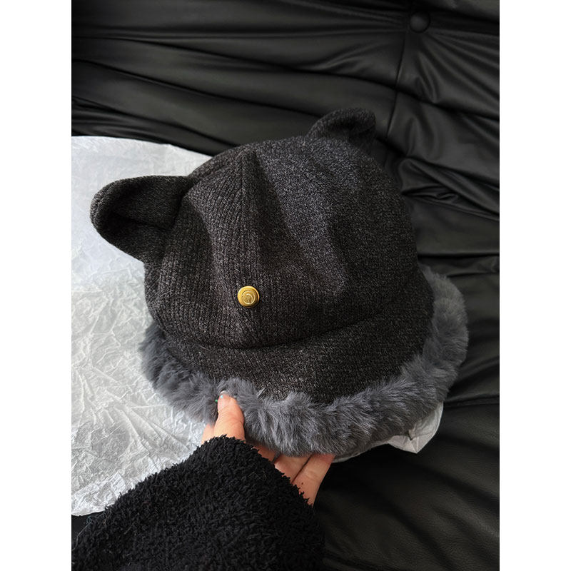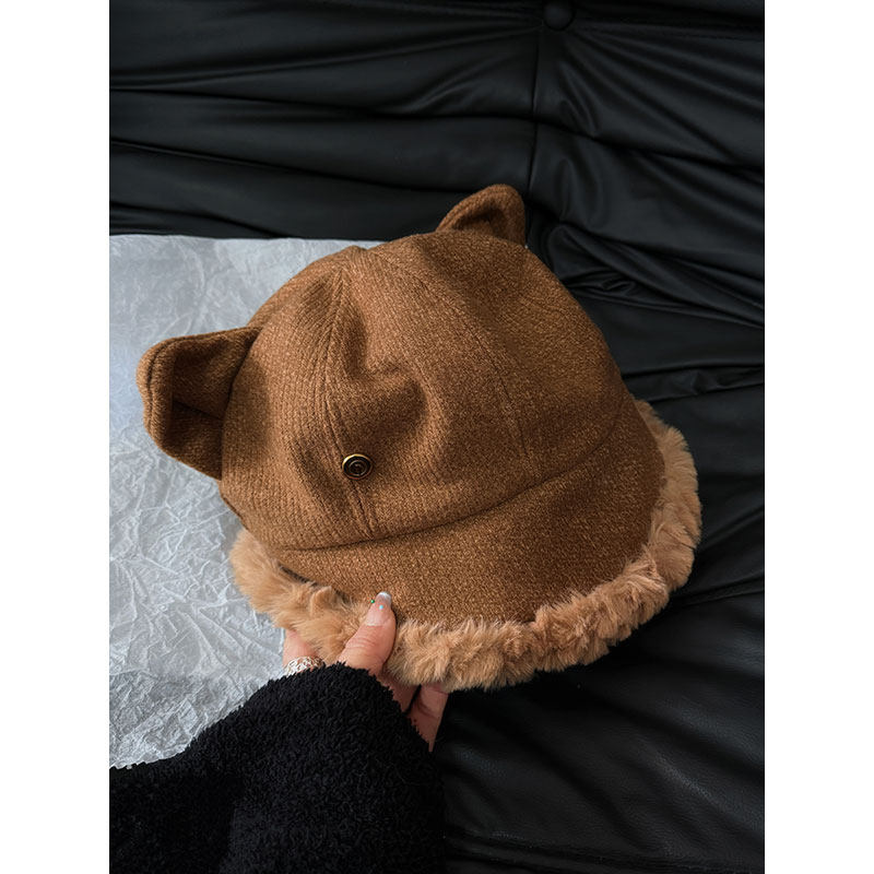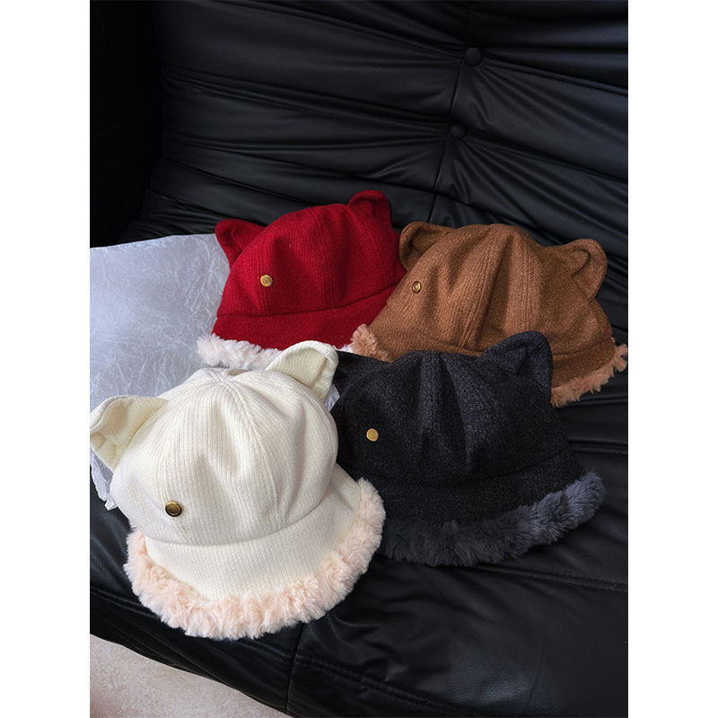 2026可爱毛绒猫耳渔夫帽子女冬季加绒加厚显脸小保暖防寒护耳帽子
