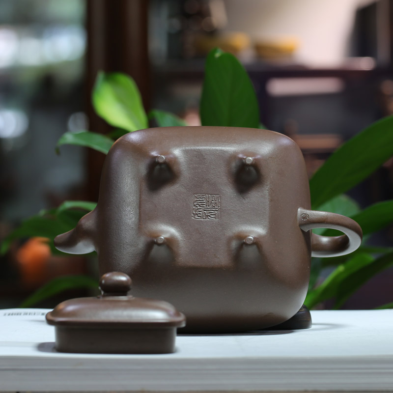 正品名家全手工紫砂壶吴界明传炉原矿紫砂茶壶方壶500cc