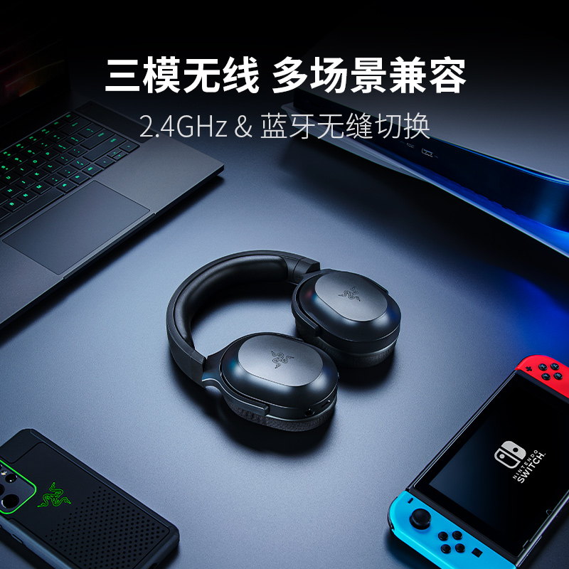 Razer雷蛇梭鱼X轻量头戴式蓝牙无线电脑手机多平台游戏耳机降噪