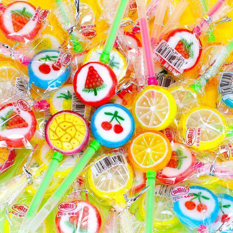 金稻谷10克口哨切片糖水果味棒棒糖儿童小零食桶装糖果便利店