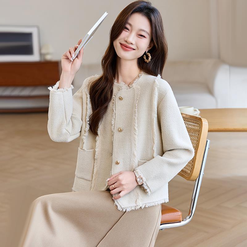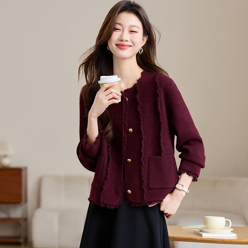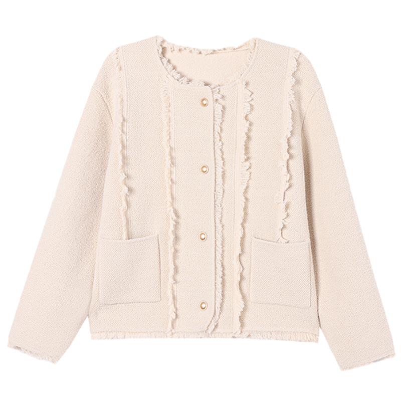 2025春秋新款圆领小香风外套女短款宽松针织开衫高腰时尚流苏上衣