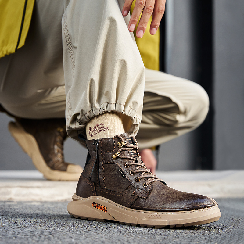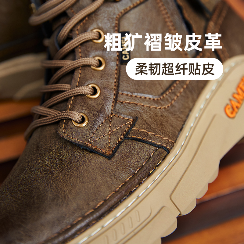 骆驼男鞋2025秋冬季马丁靴男款复古抓纹拉链厚底高帮工装靴子男款