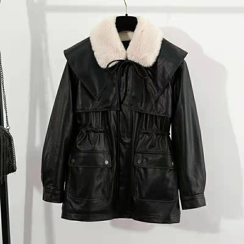 小个子网红pu皮衣外套女2022秋冬新款派克服加绒加厚皮毛一体夹克
