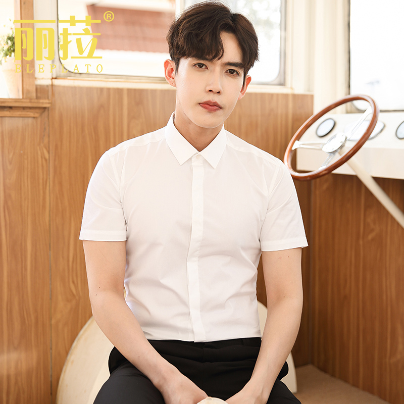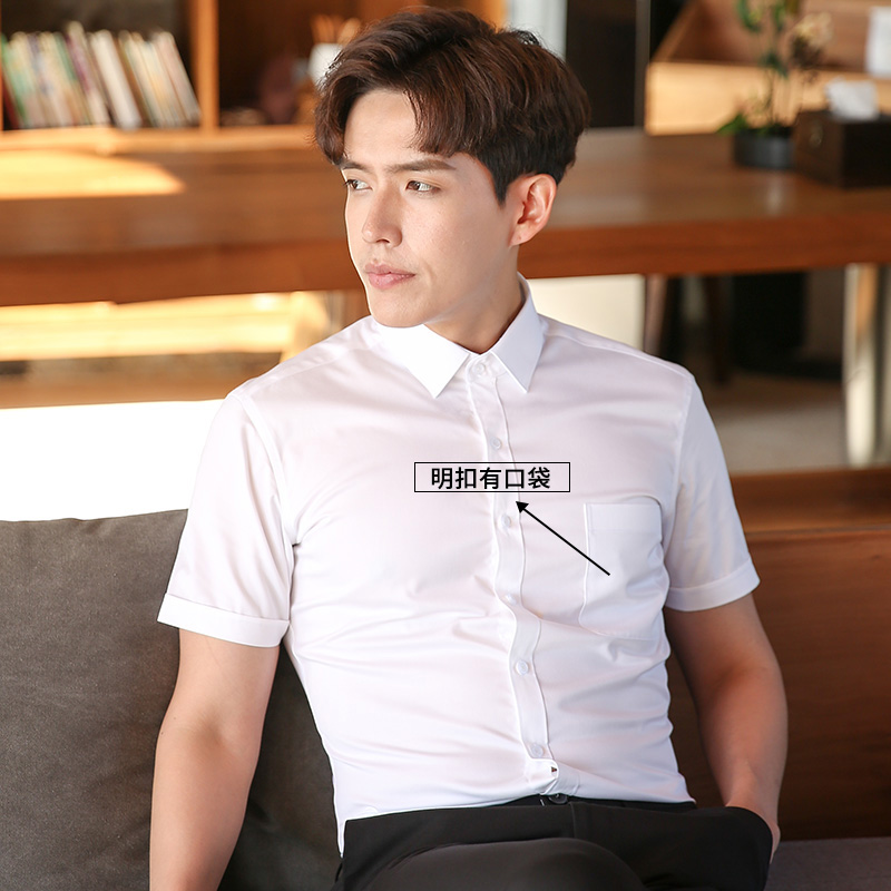 白衬衫男短袖夏薄款商务工作服修身白色工装男士衬衣职业寸衫正装