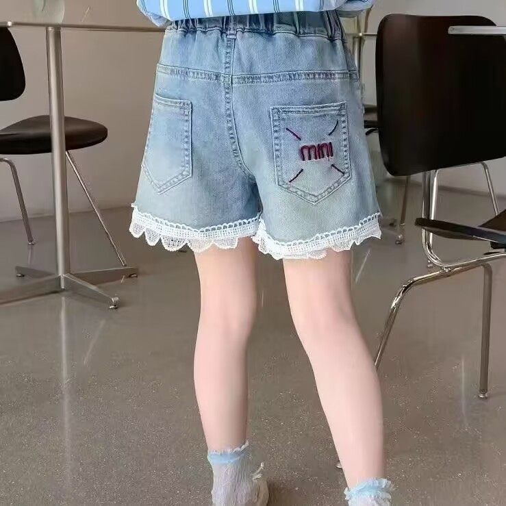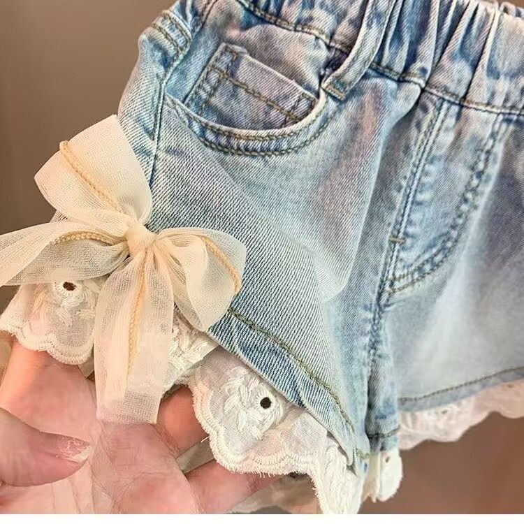 女童短裤夏装2025新款儿童洋气花边儿童牛仔裤宝宝蝴蝶结韩版热裤
