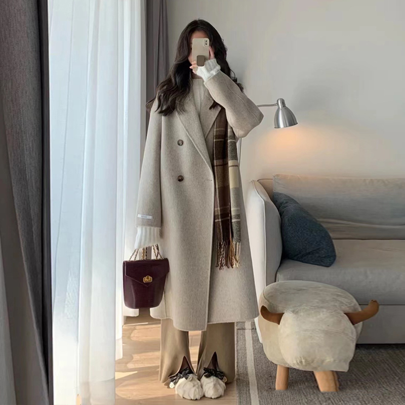 高级感赫本风呢子大衣女2023秋冬季新款韩版小个子毛呢外套中长款