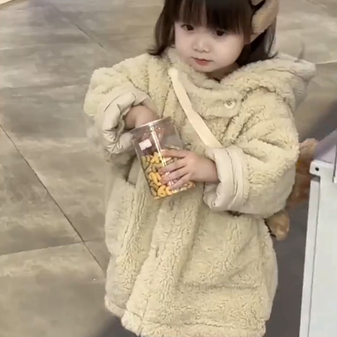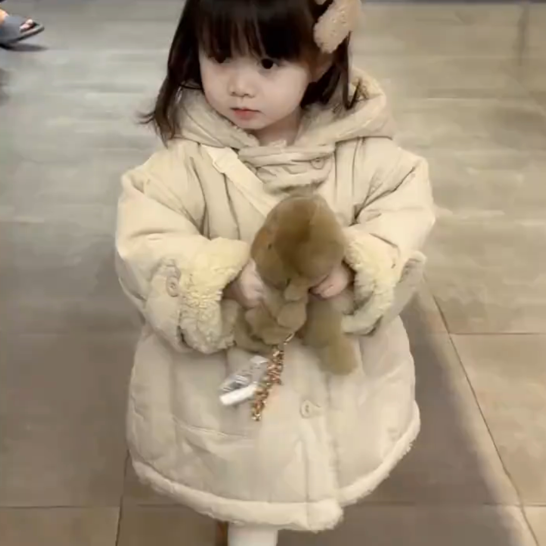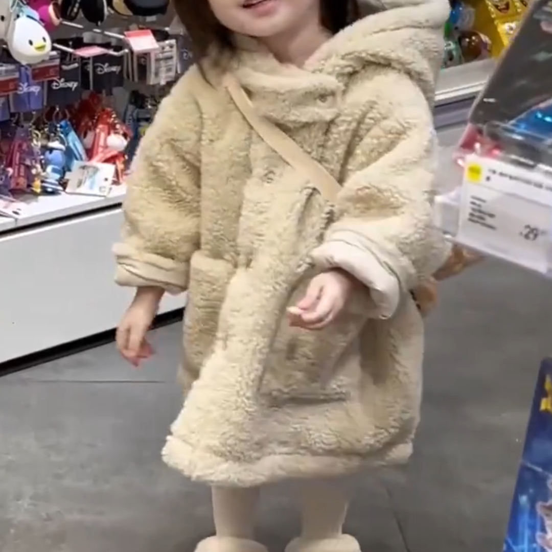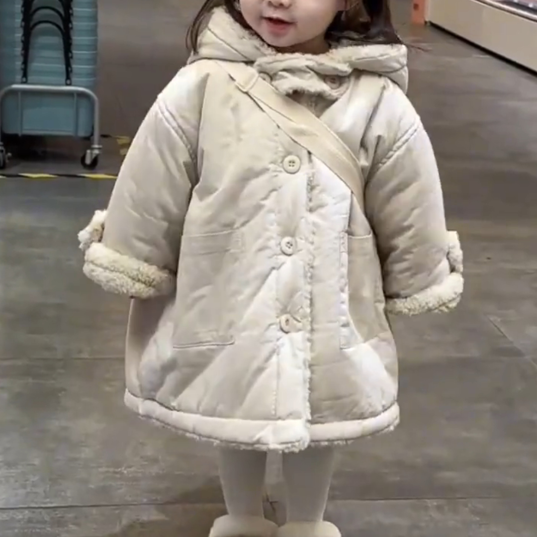 儿童棉衣2025冬装女童羊羔绒连帽外套女宝宝双面穿中长款加厚棉服