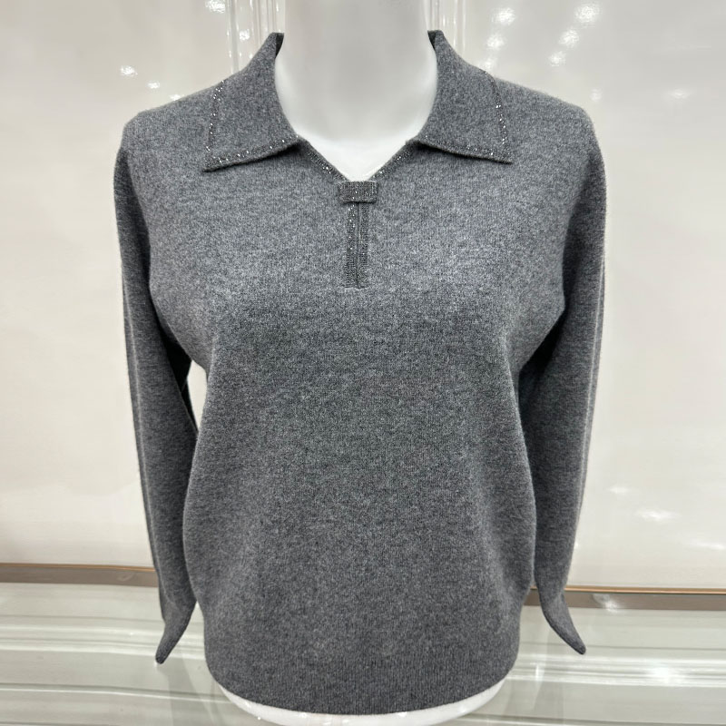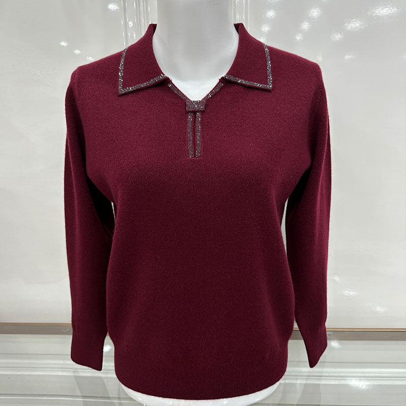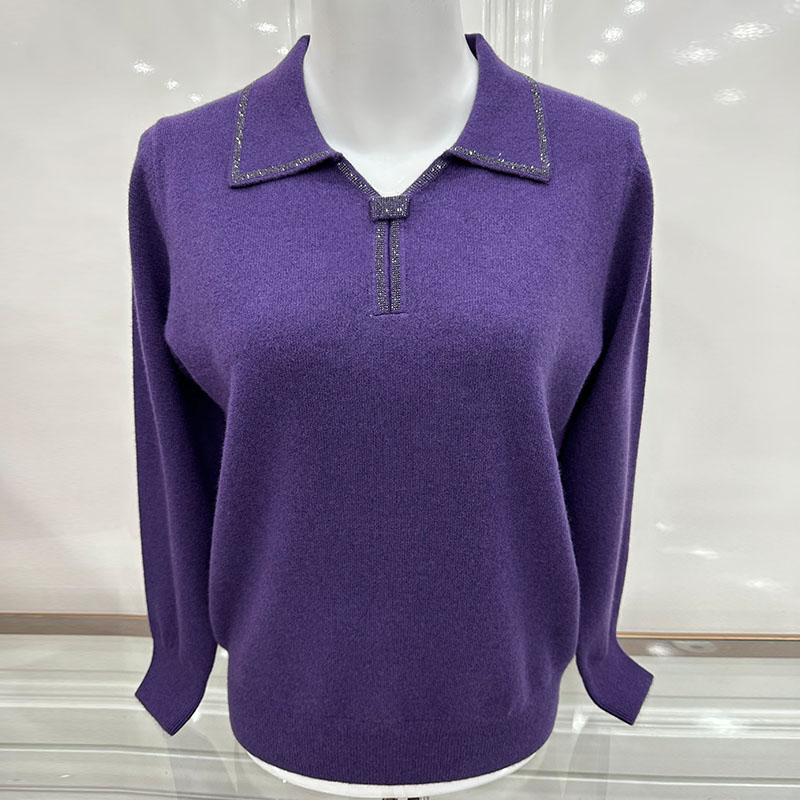 凤凰妈妈装秋2025新款上衣t恤翻领针织衫青藏绒中老年女装羊毛衫