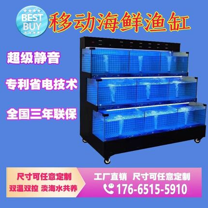 三层海鲜鱼d缸制冷机饭店商用鱼缸海鲜缸生鲜超市水产鱼缸贝类鱼