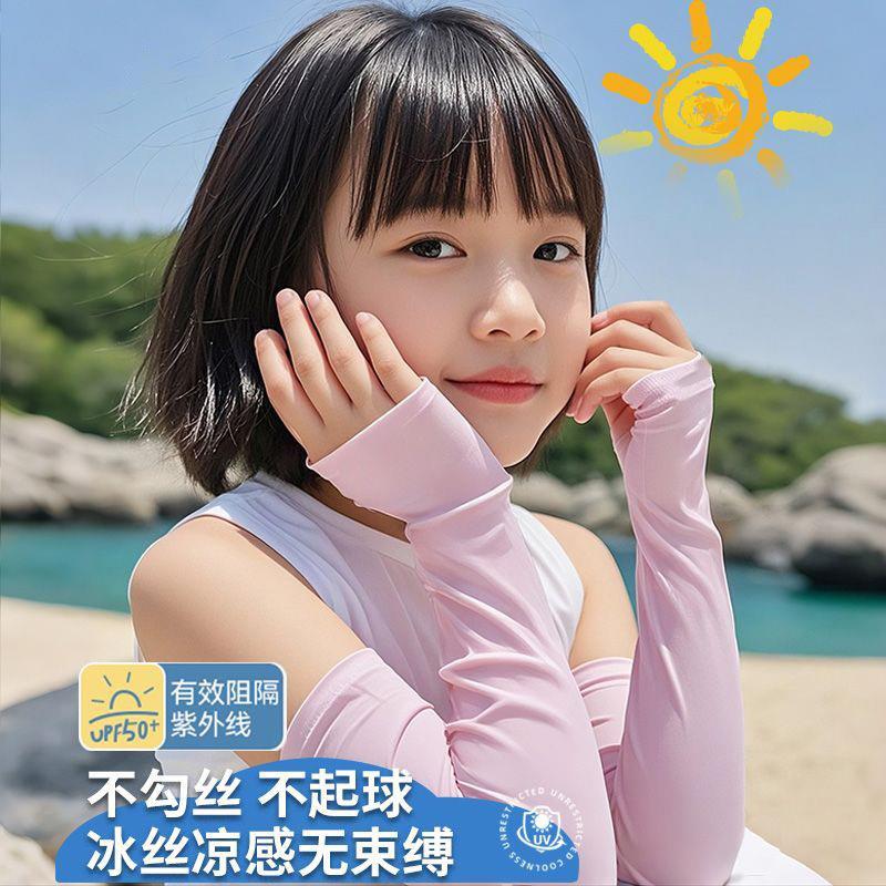 儿童冰袖防晒宝宝袖套女孩男童防紫外线凉感冰丝速干轻薄手臂套袖