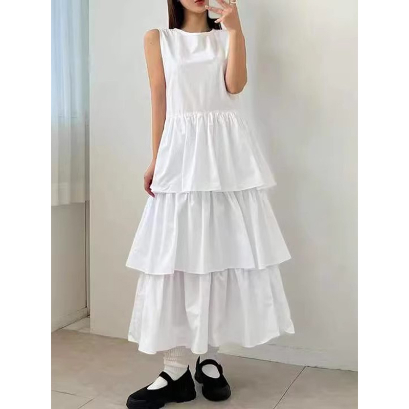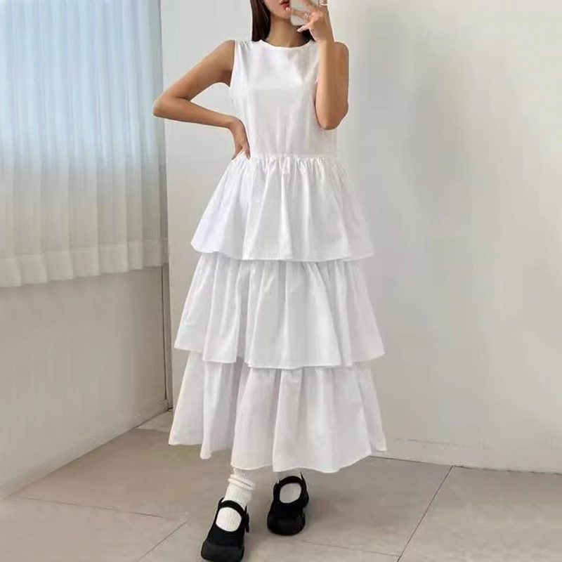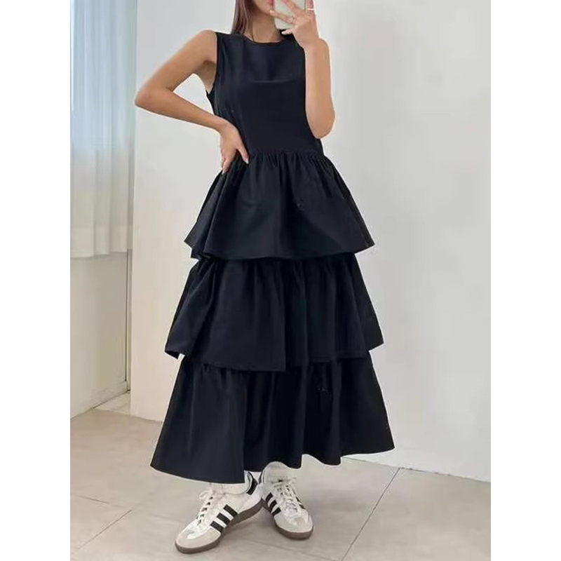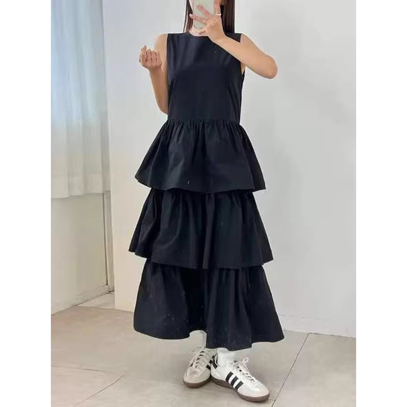 良良家拼接层次感蛋糕裙背心连衣裙女夏季新款简约气质无袖长裙子