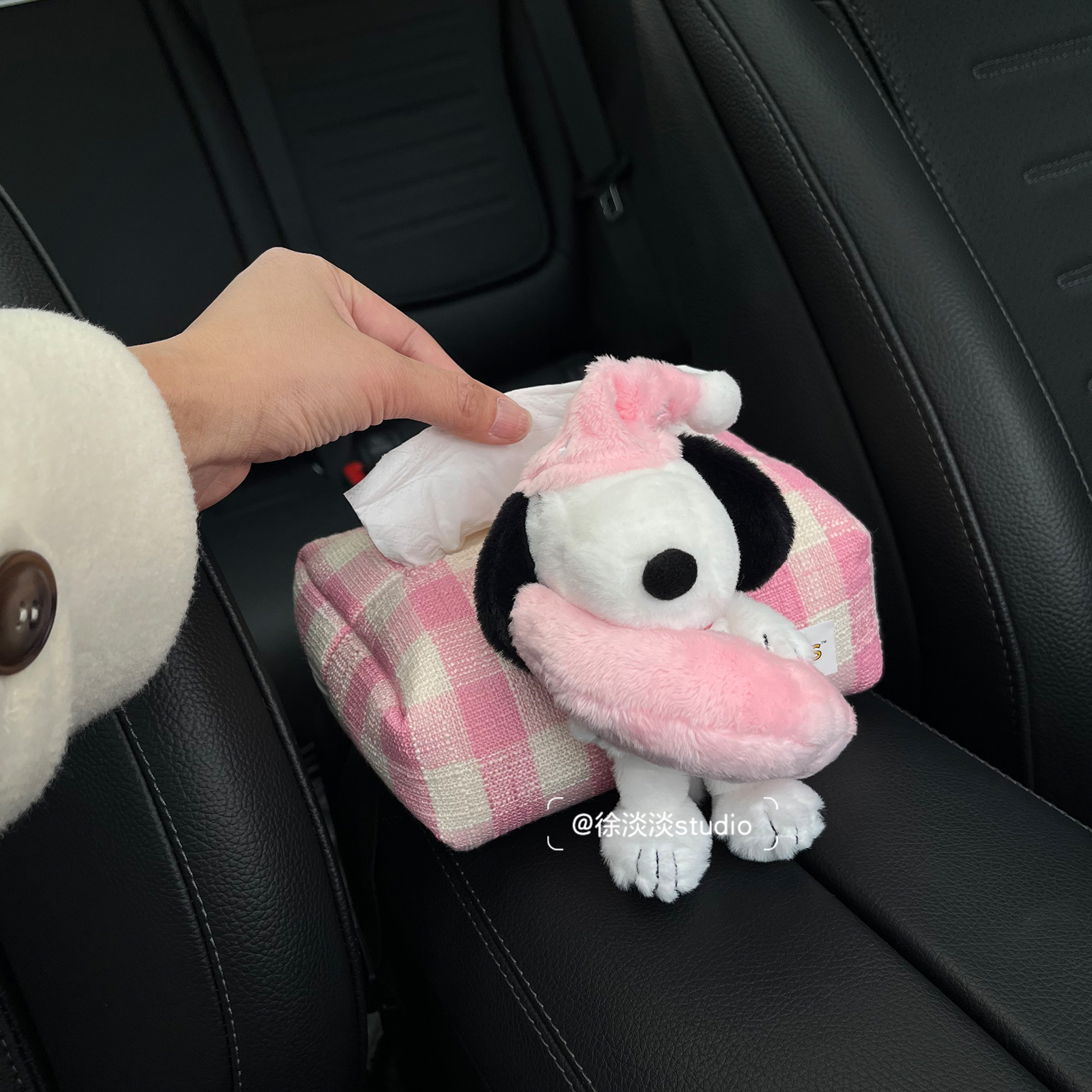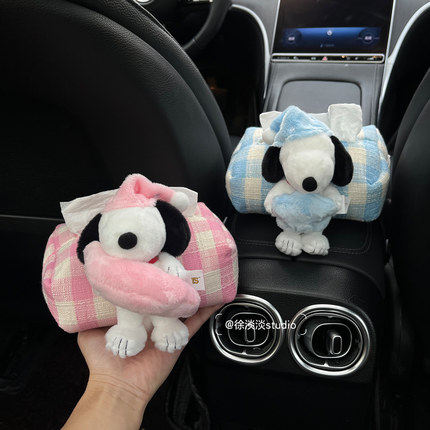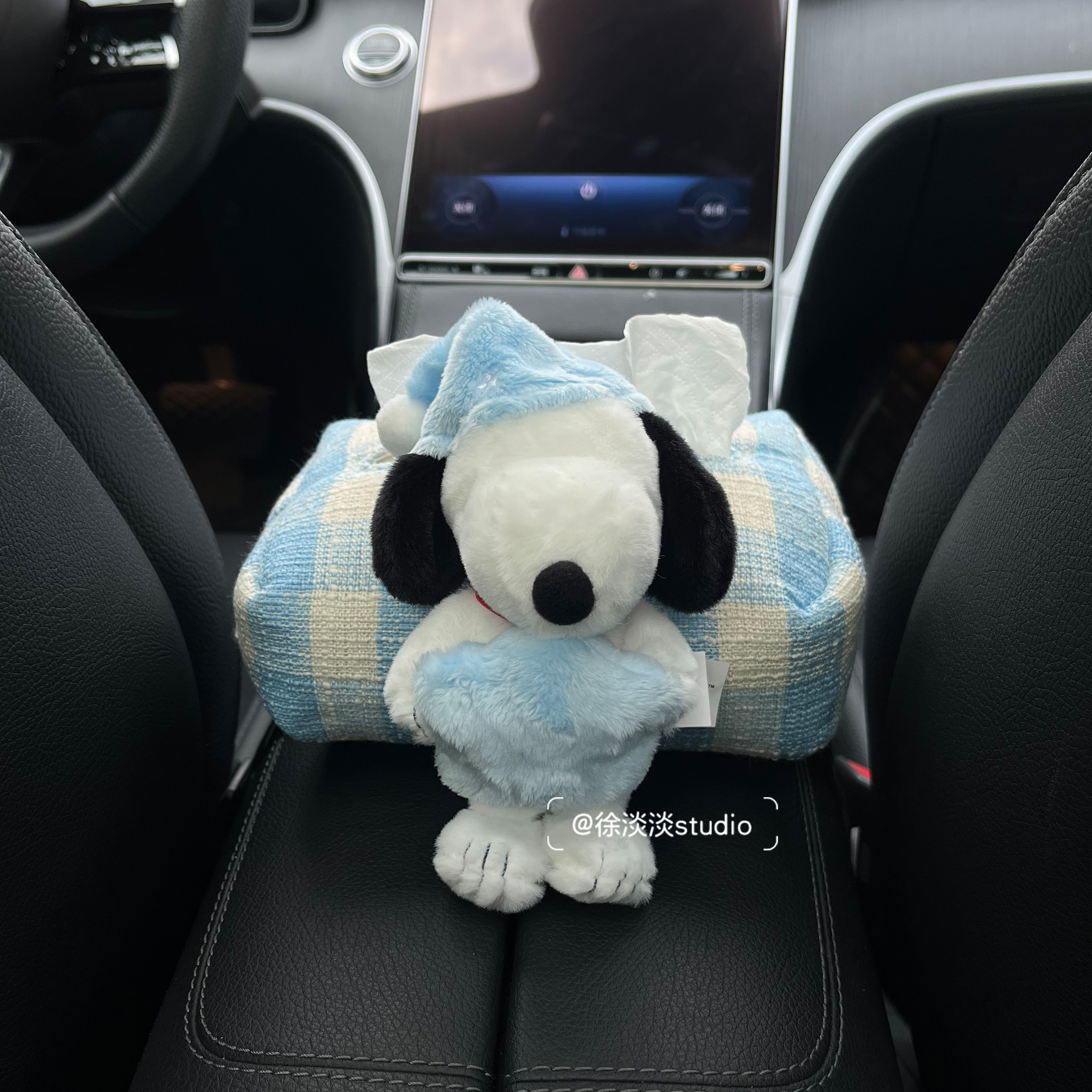 正版史努比车载纸巾盒扶手箱抽纸盒纸巾盒袋车内饰装饰送新车礼物