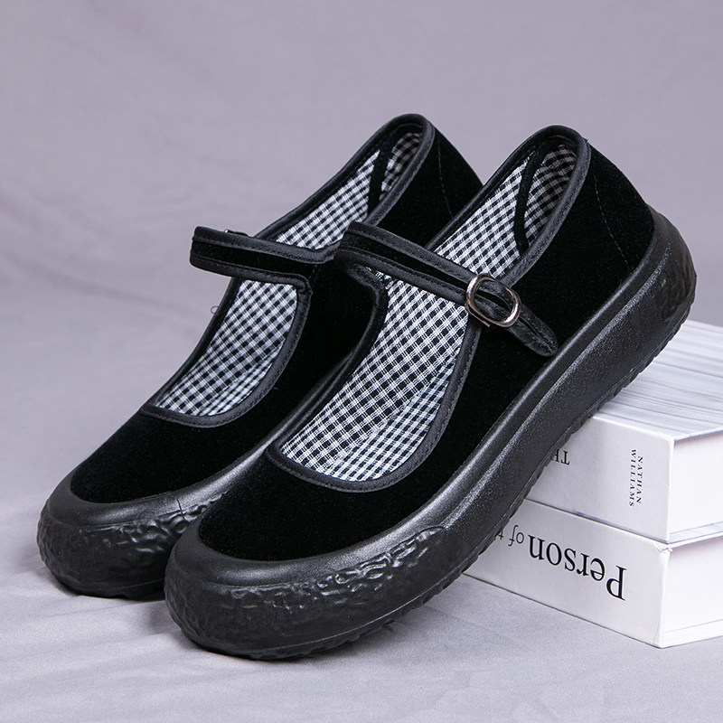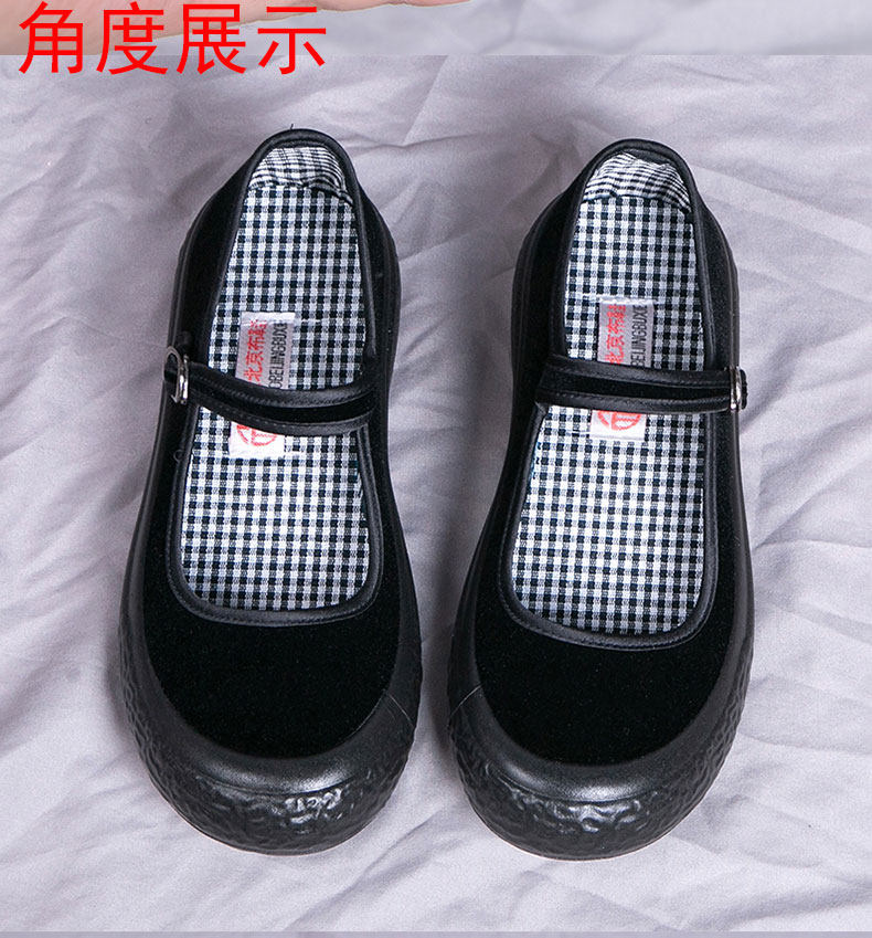 2024年新款胖头鞋老北京布鞋黑色酒店礼仪工作鞋软底厚底防滑女鞋